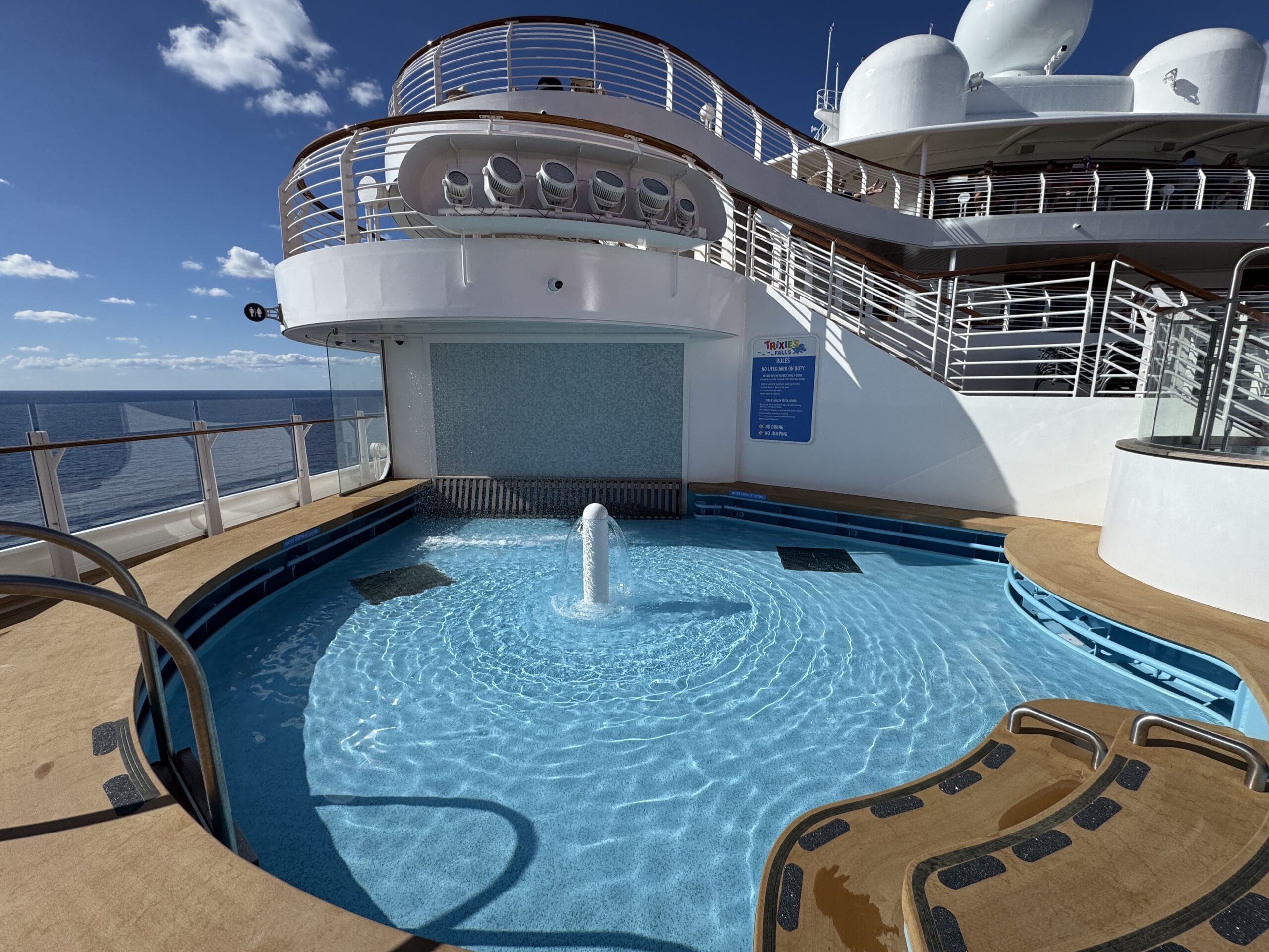 The smaller pools on elevated platforms of Deck 11, Aft are Daisy’s Pool and Pluto’s Pool.
