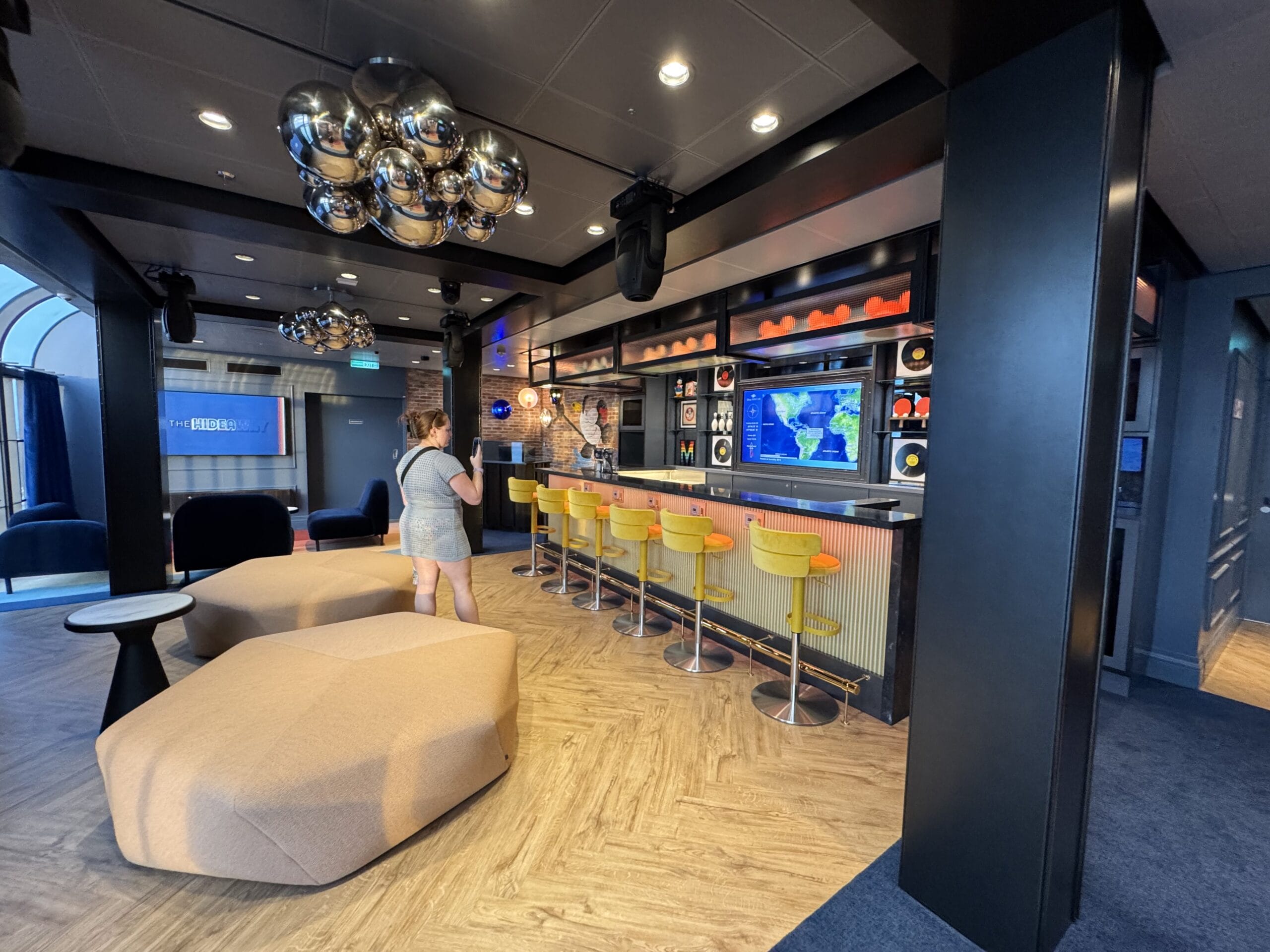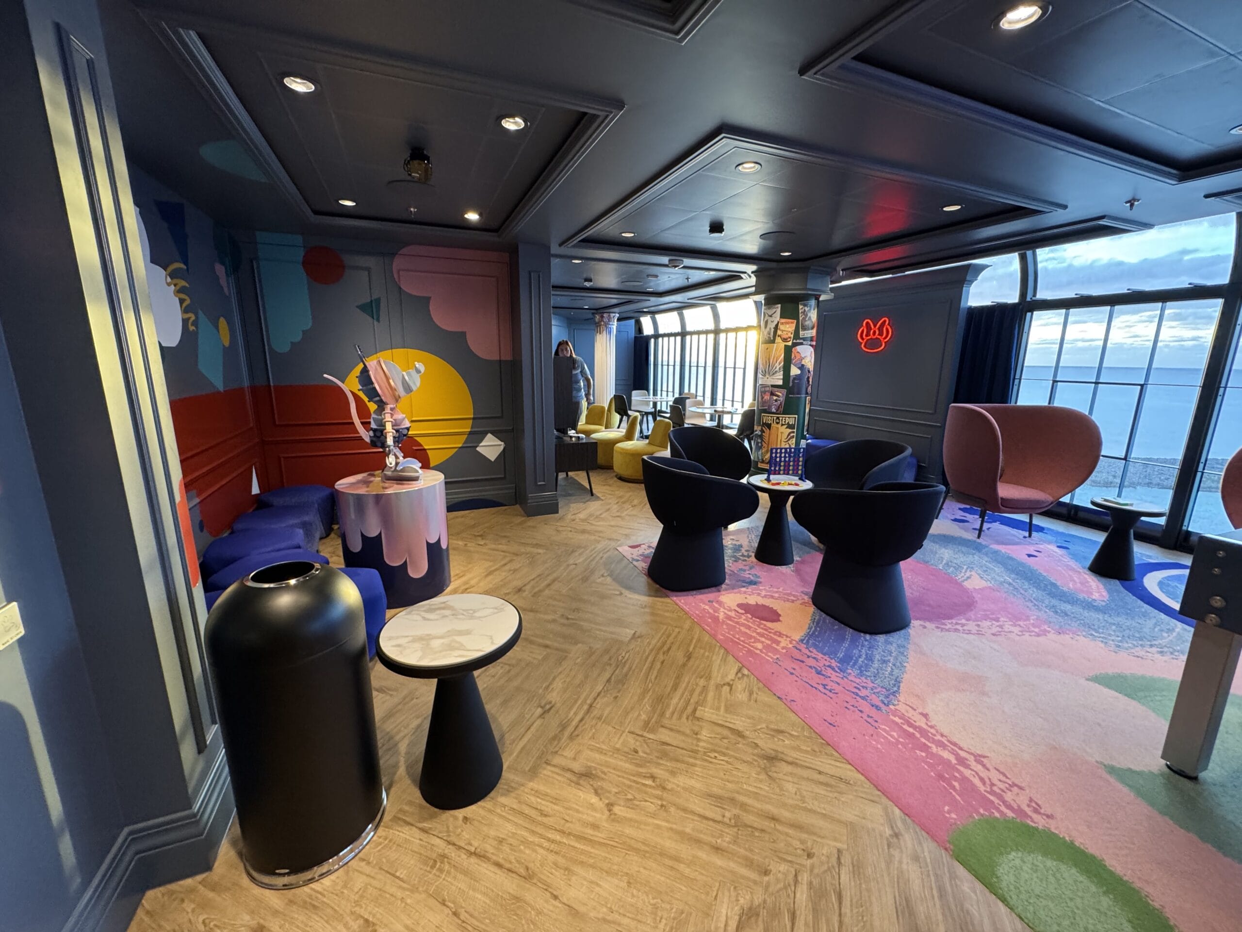 Vibe’s theming is inspired by a Parisian artists’ loft with architectural elements with a retro twist of twists. Neon signs and funky art can be found throughout the space.