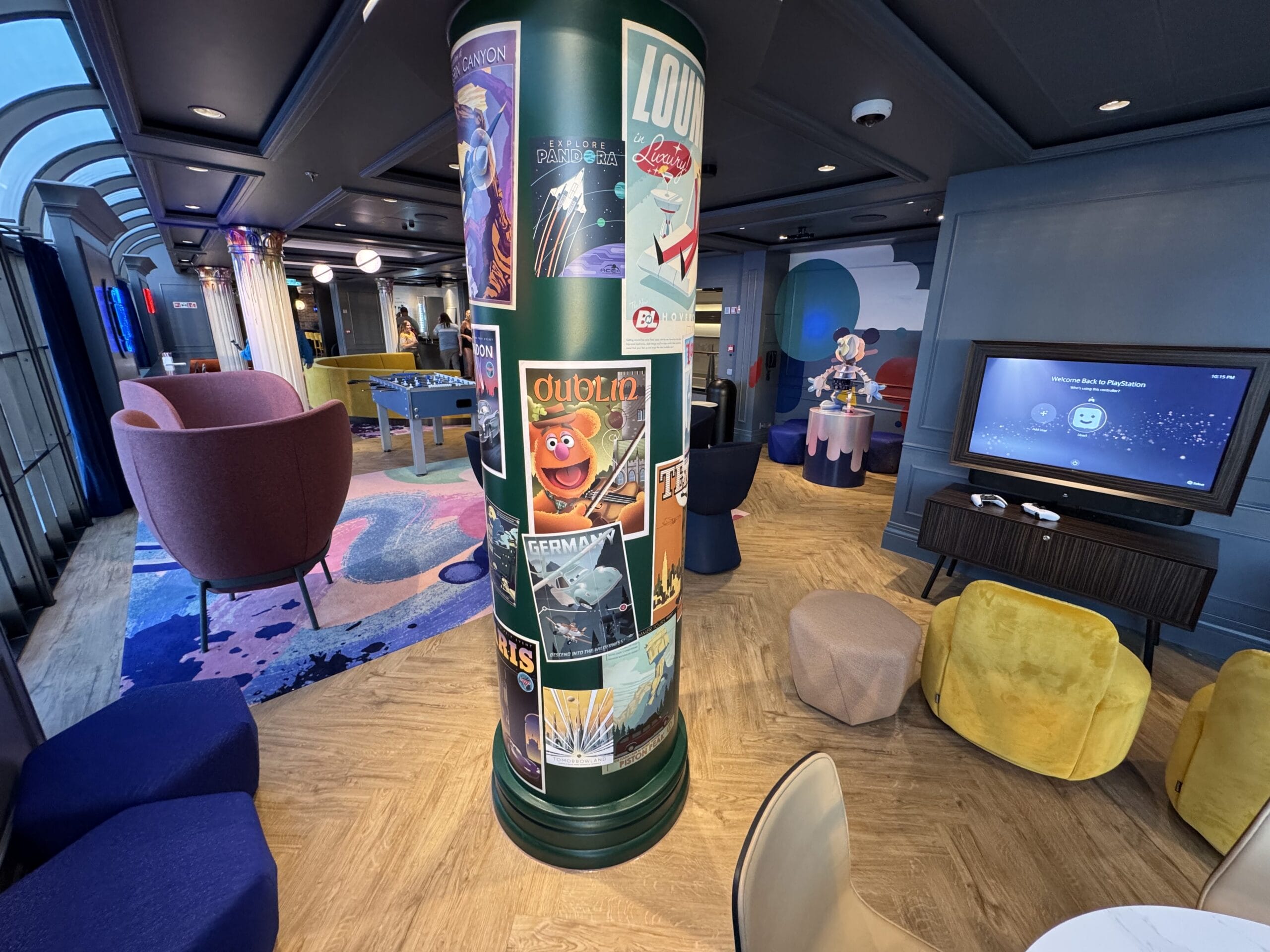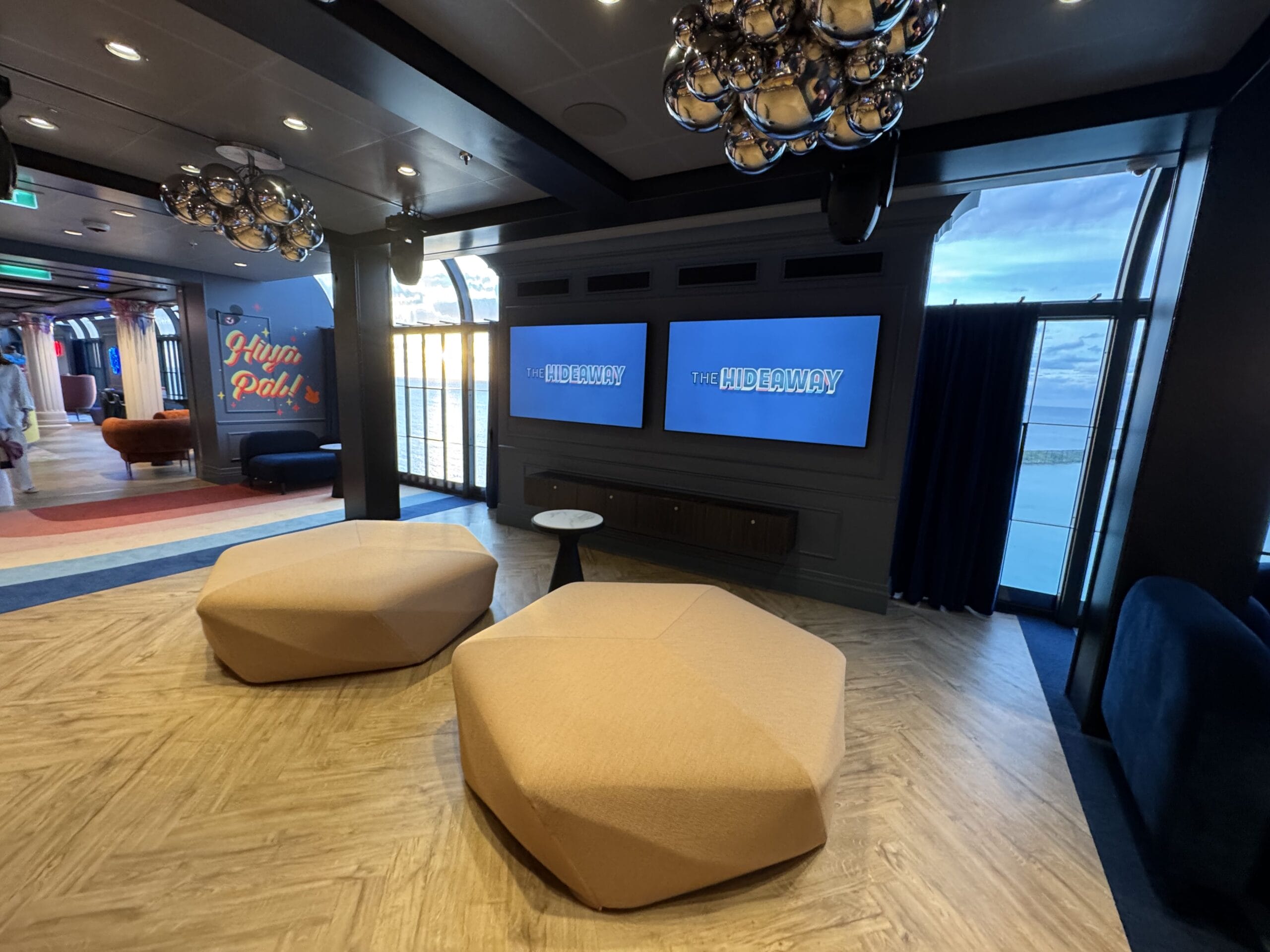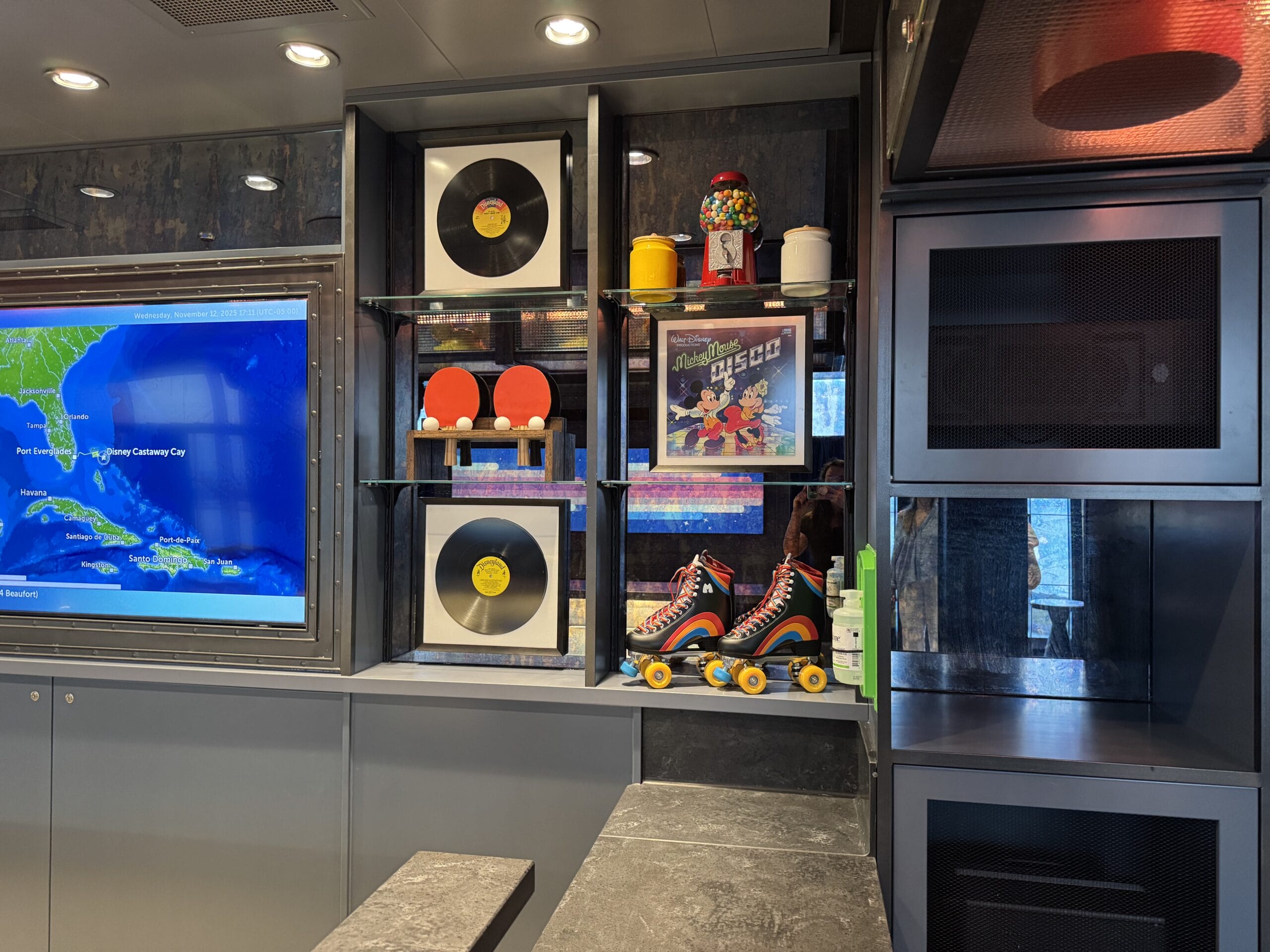 Guests who are between the ages of 14 and 17 can hang out in Vibe and Hideaway, the teen-only clubs on the Disney Destiny. The space features televisions, games, and a “nightclub.”
