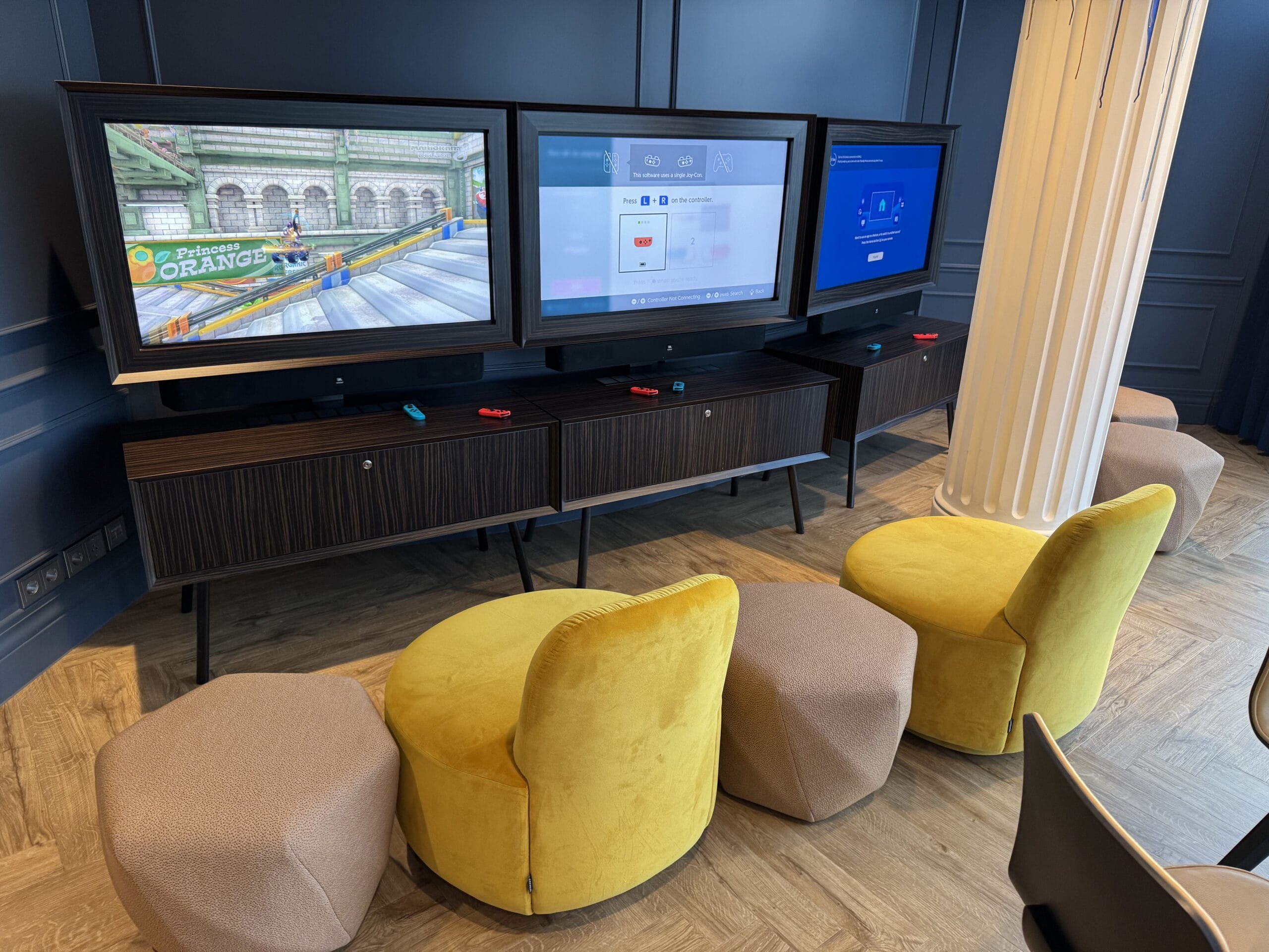 Spaces with less technological distractions are also incorporated into Edge, like pictured above. Games like Connect 4 and Sorry are set up on tables