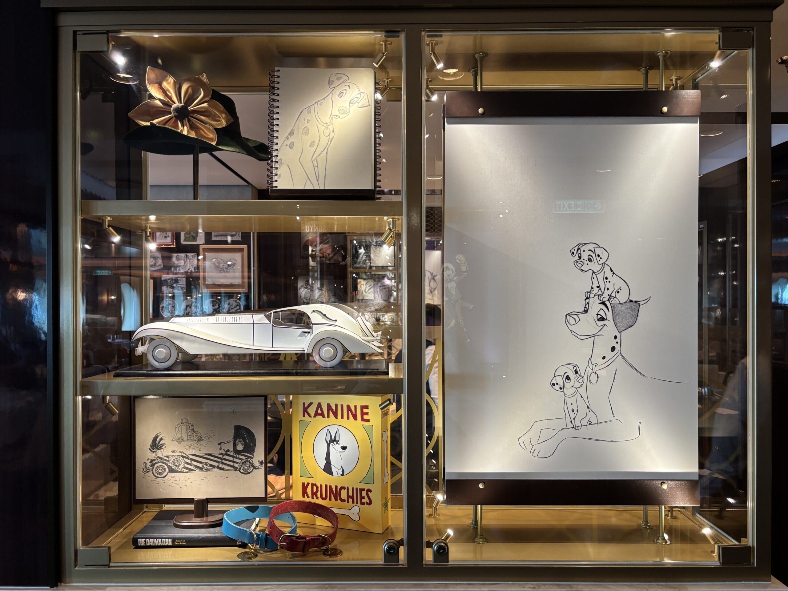 Guests of 1923 will find dog collars, a model of Cruella’s car, and more in the 101 Dalmatians display.