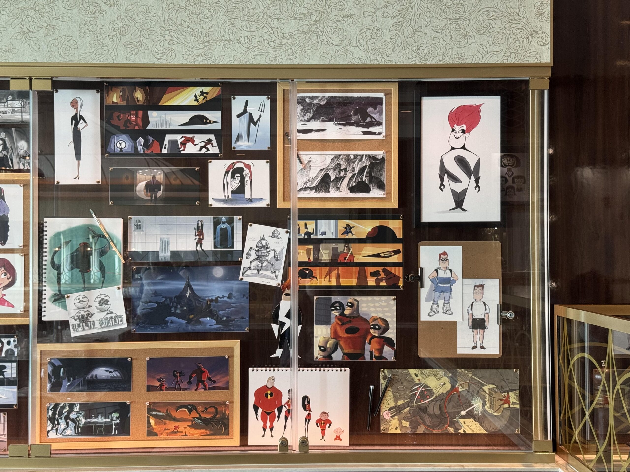 The Roy Disney has display cases throughout the space with sketches, props, and memorabilia for several Disney and Pixar films.