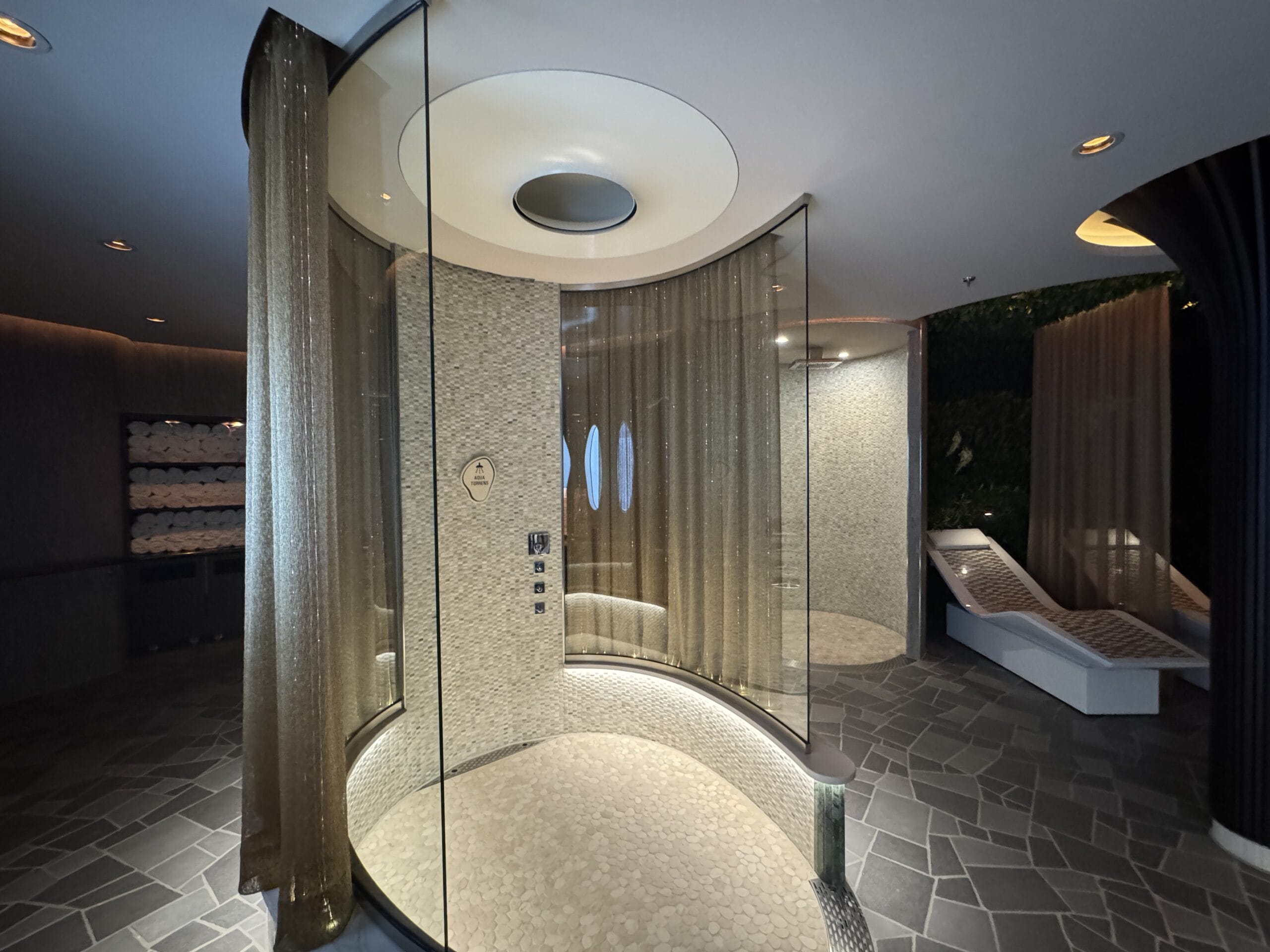 Pictured above are rainforest-themed aromatherapy steam showers.
