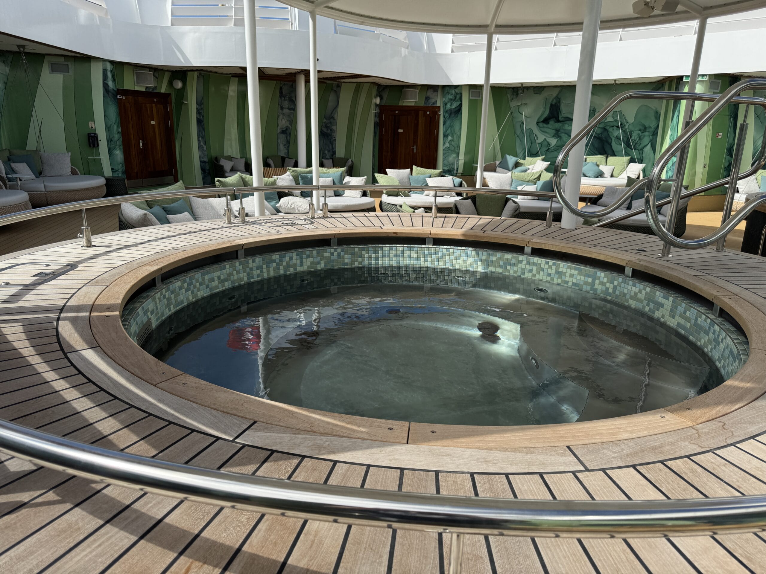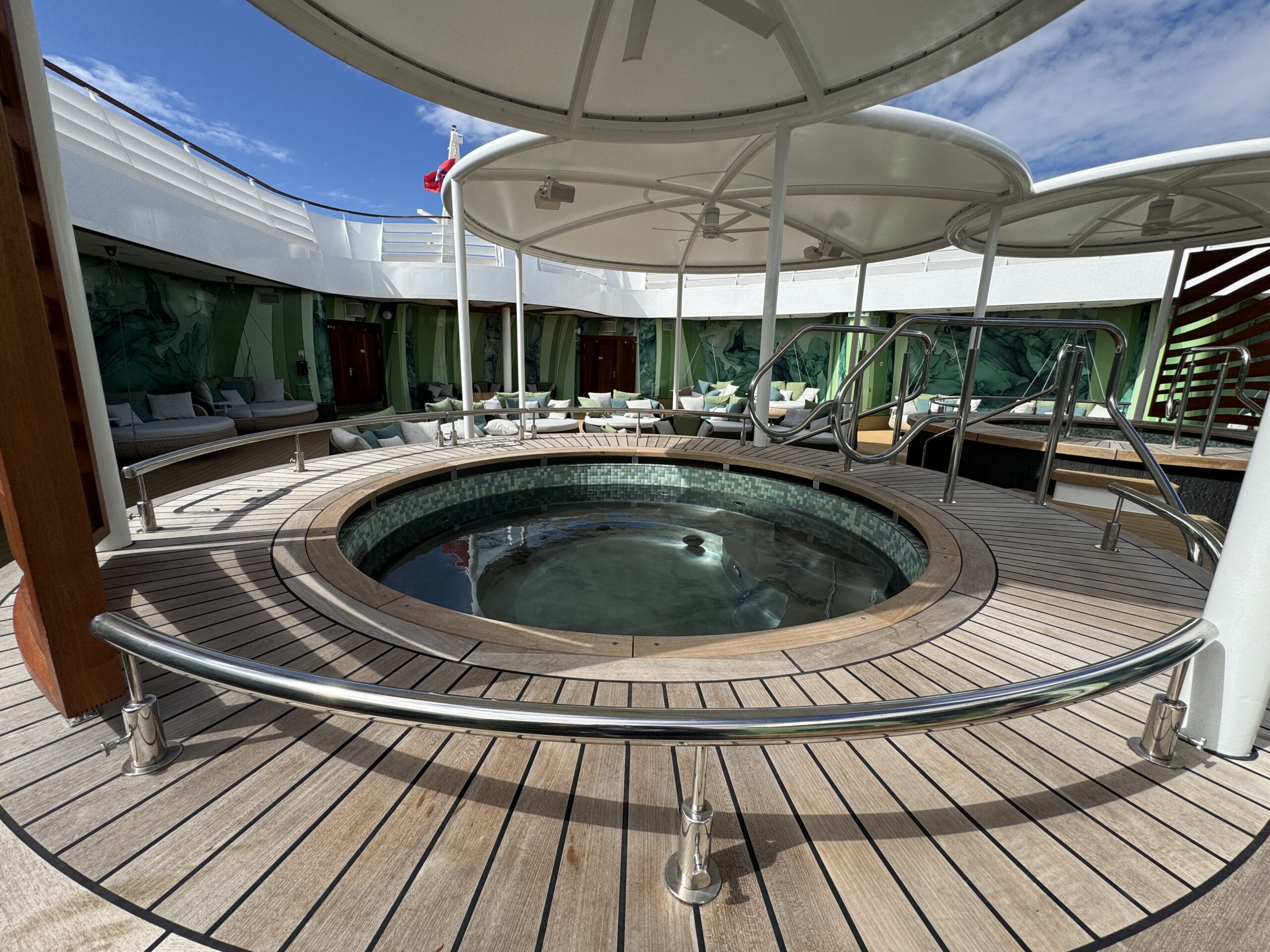 An outdoor area offers more whirlpools and lounging areas.