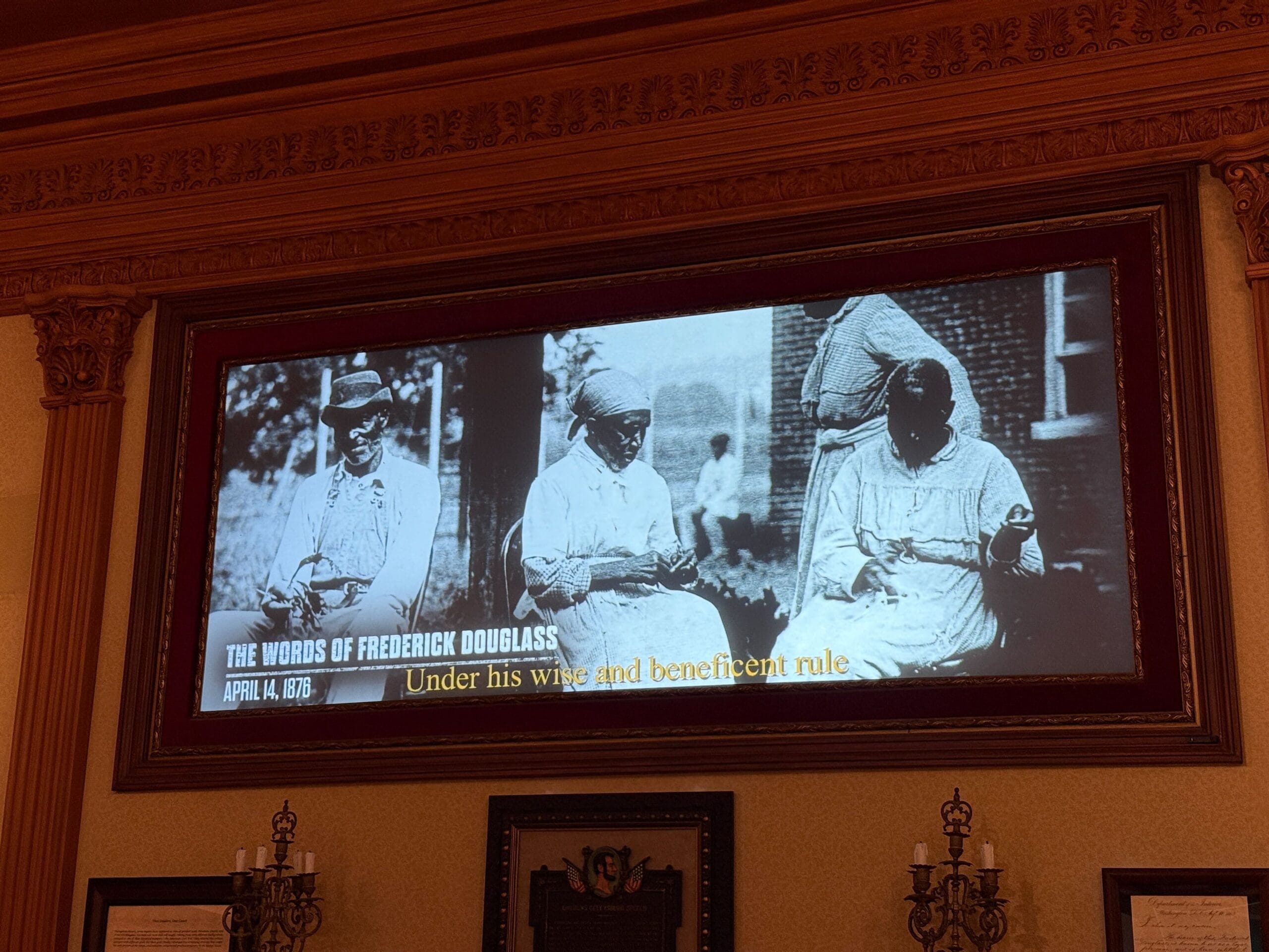 The Frederick Douglass pre-show also plays in the lobby.