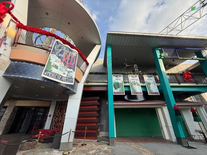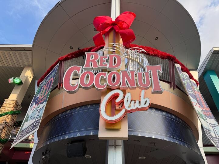 The Green and Red Coconut Club has opened at Universal CityWalk Orlando for the 2025 holiday season. The annual Christmas overlay of the Red Coconut Club features themed decorations, cocktails, and this year, an Earl the Squirrel meet and greet.