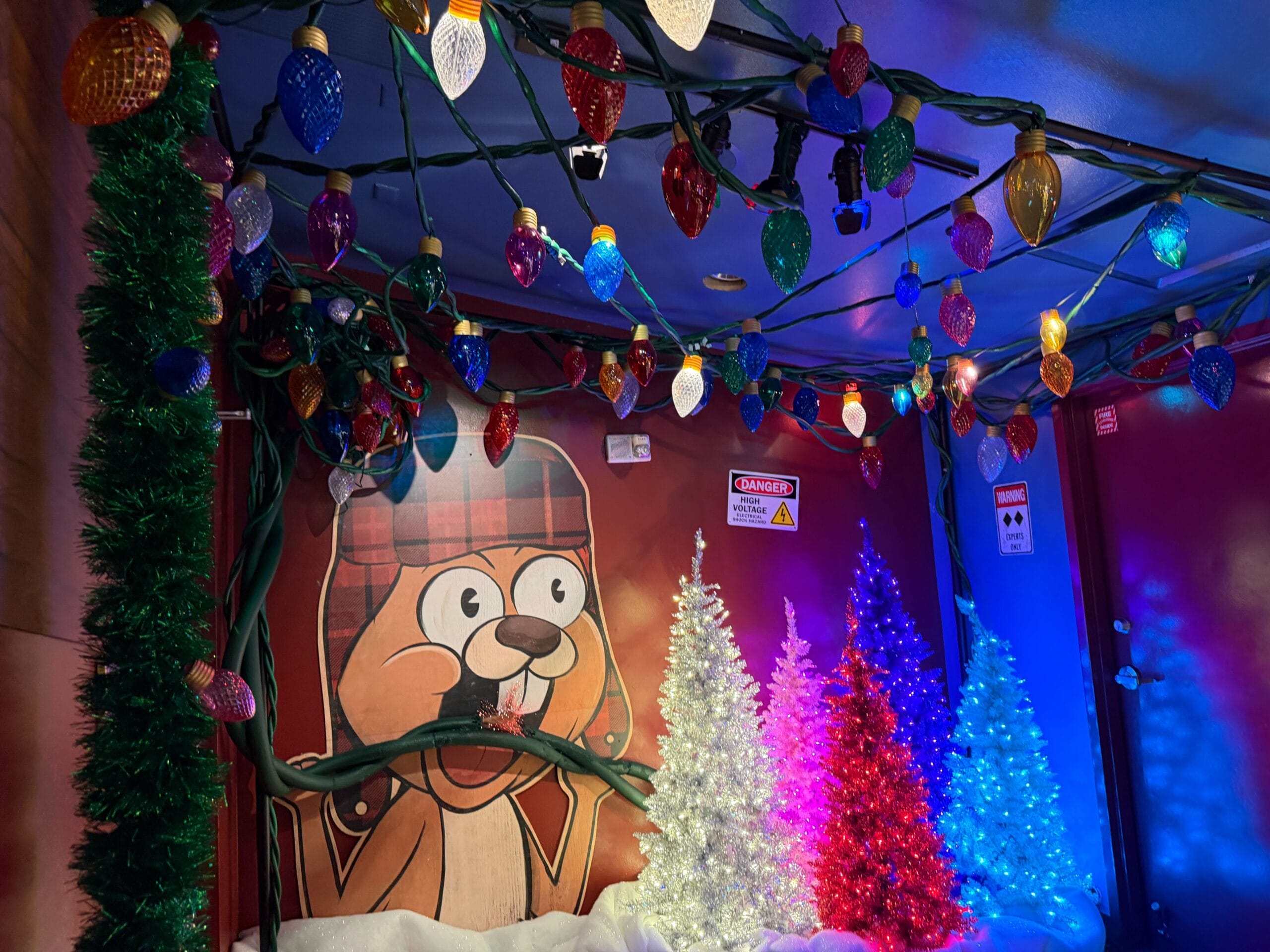 We even caught the famous guy in action. Earl holds a blue lightbulb (that he likely stole) as he meets a guest visiting the upstairs lounge to celebrate his 12 days of Christmas.