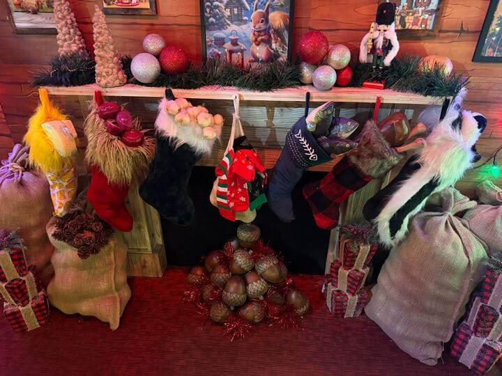 Squirrels, bears, deer, and a holiday calendar all decorate the space.