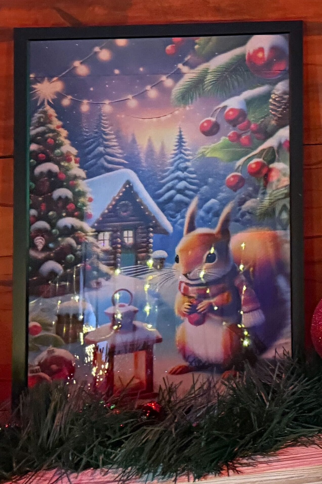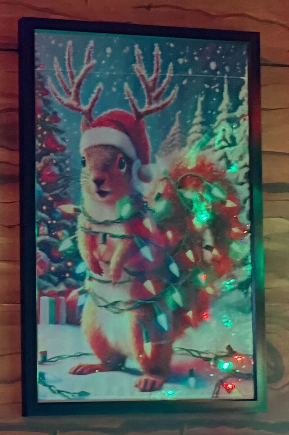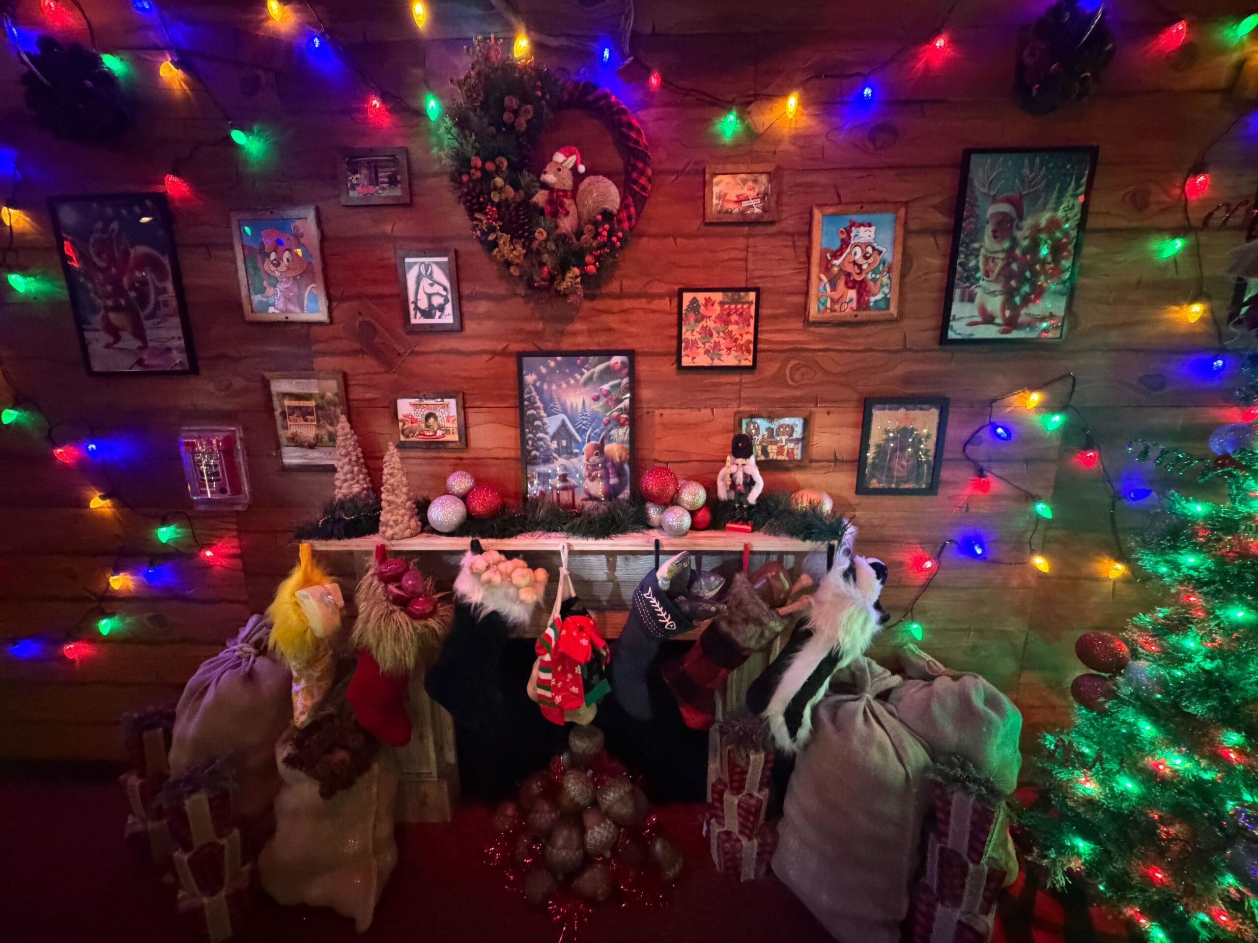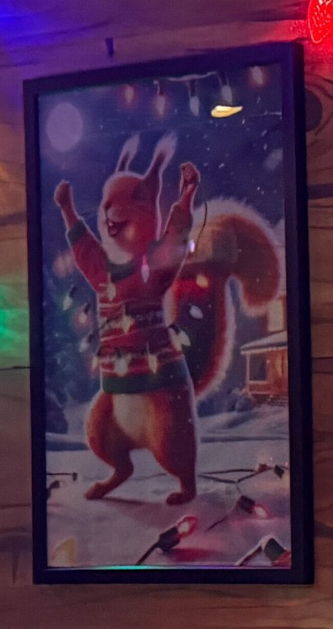 There are three pieces of alleged AI art among the 2025 Green and Red Coconut Club holiday decor, which you can spot in our full tour. They are the three larger images in plain black frames on Earl the Squirrel’s “family portrait” wall, located upstairs.