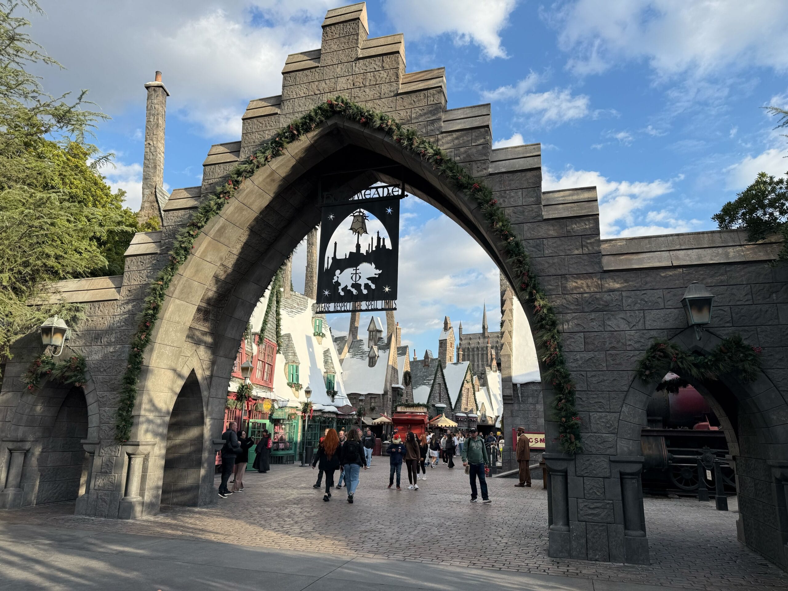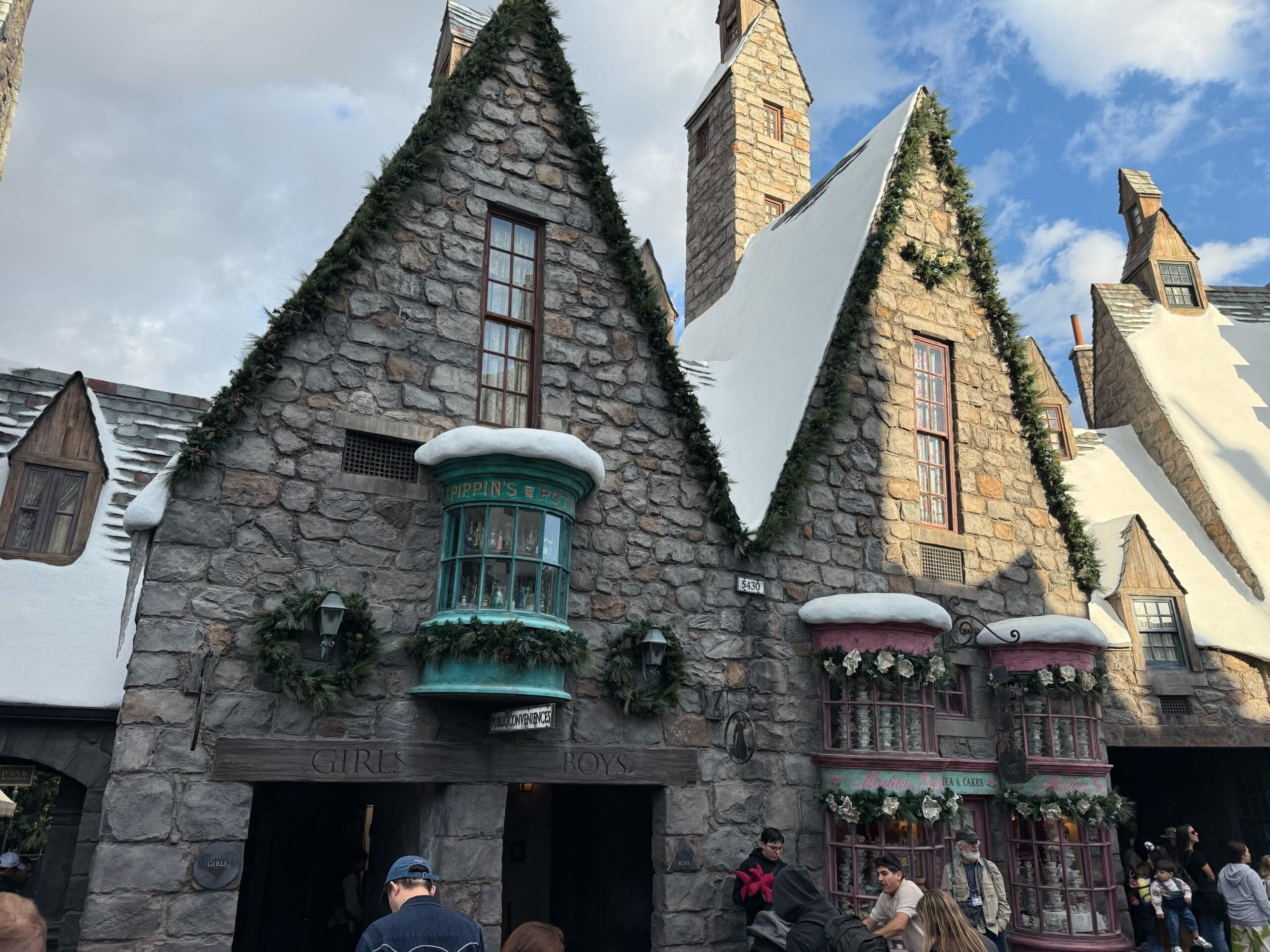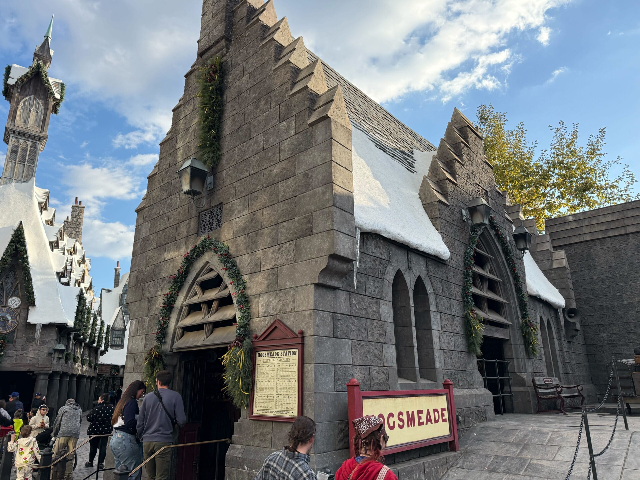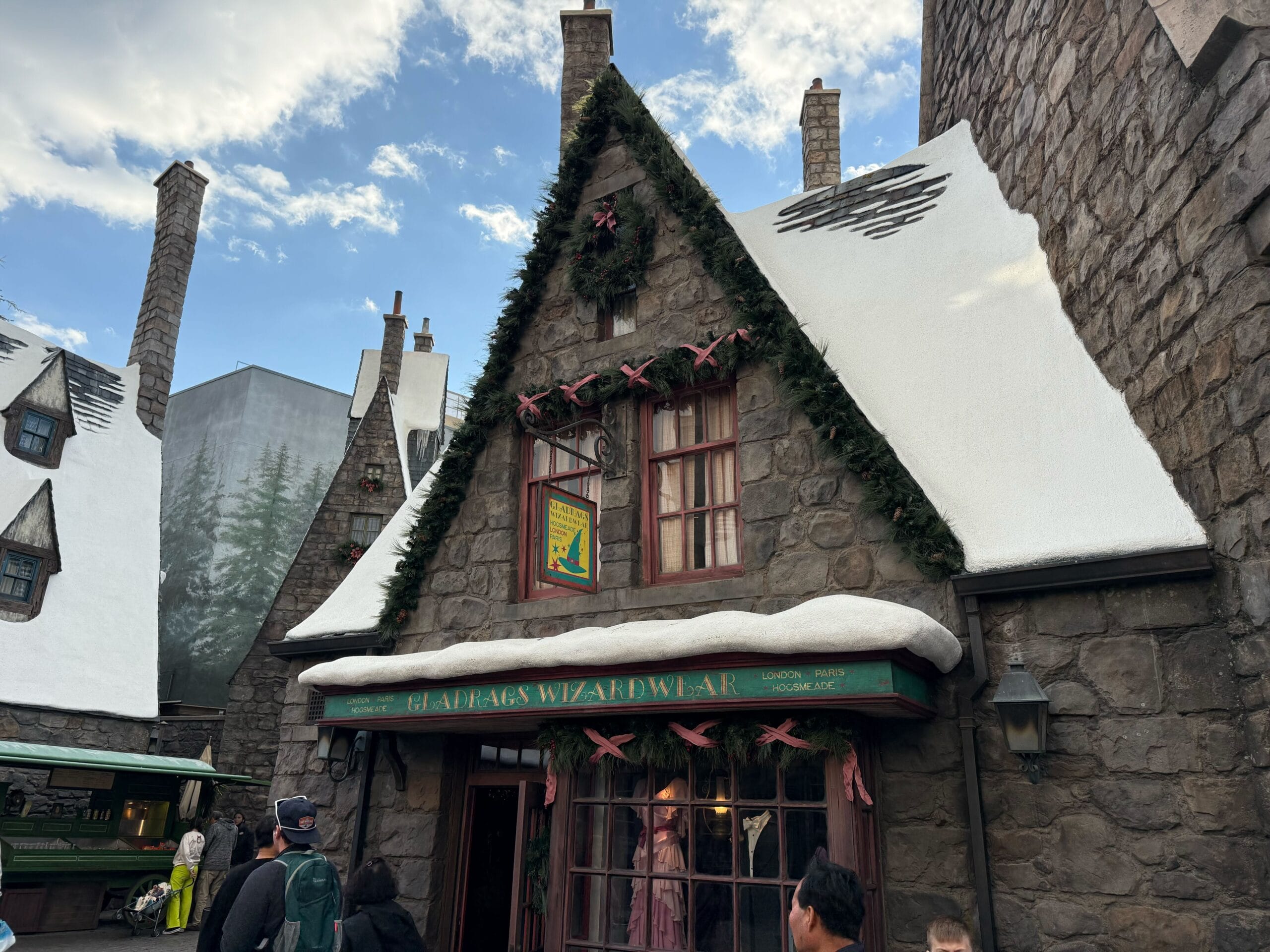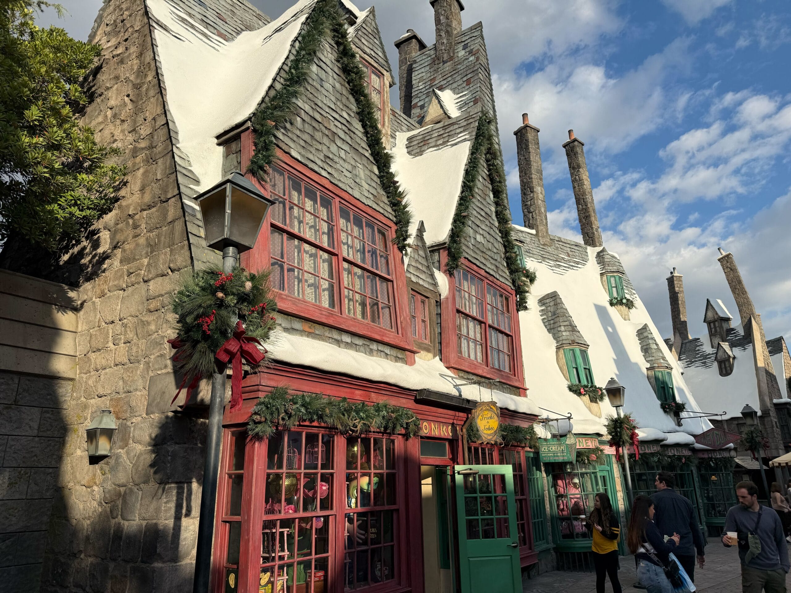 Witches and wizards celebrate Christmas, too. Though Hogsmeade is always decked out with snow, it gets holiday decorations this time of year.