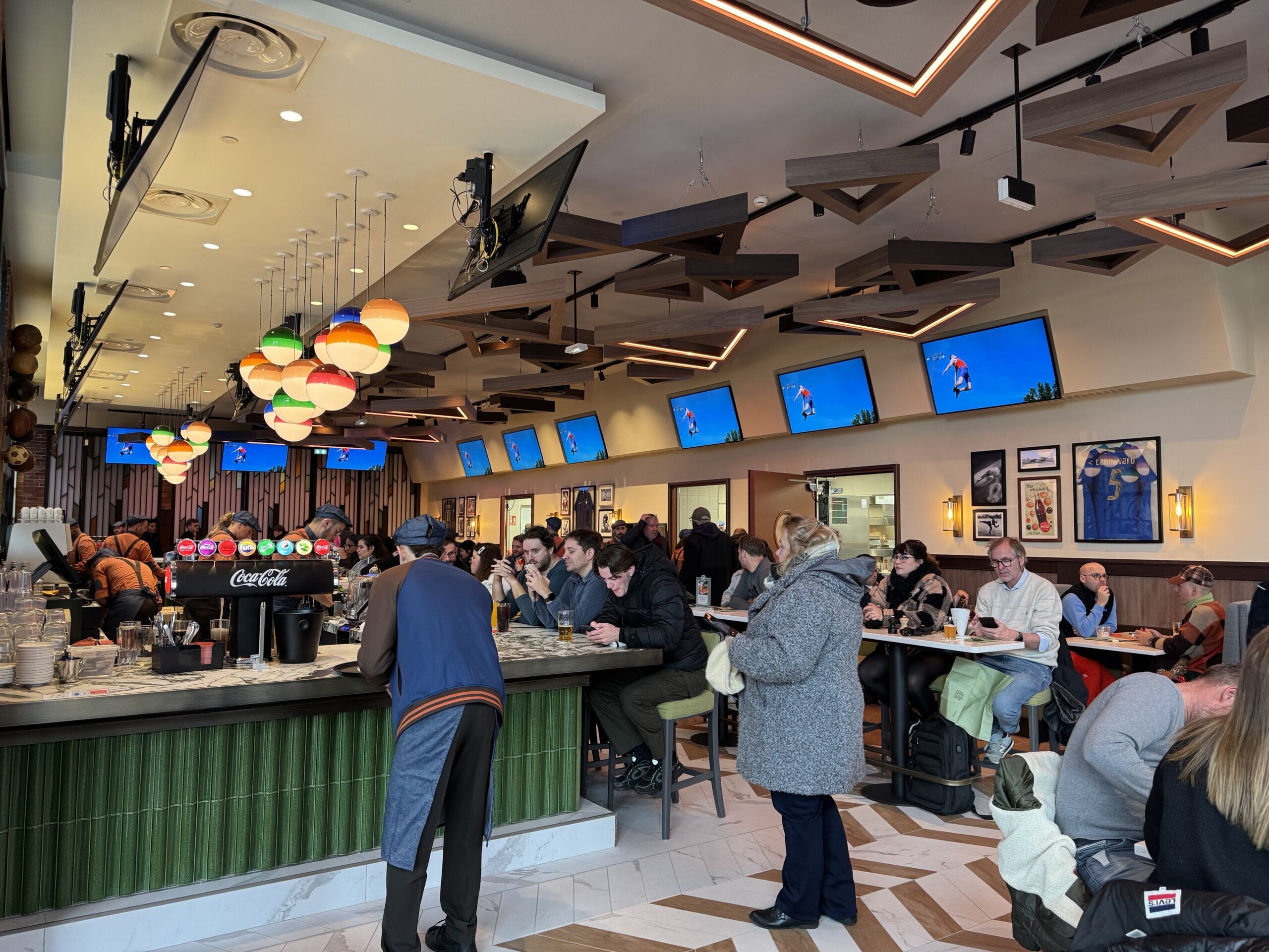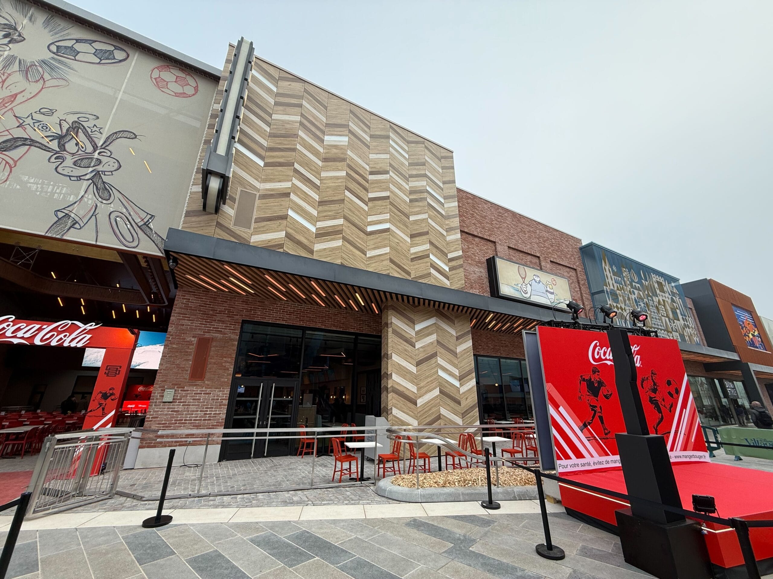 Disneyland Paris announced the refurbishment of the Sports Bar at Disney Village and shared concept art in 2024 for the contemporary take on the Coca-Cola sponsored space. Along with a contemporary interior and refreshed patio, Sports Bar also absorbed the space formerly occupied by New York Style Sandwiches to add an additional seating area.