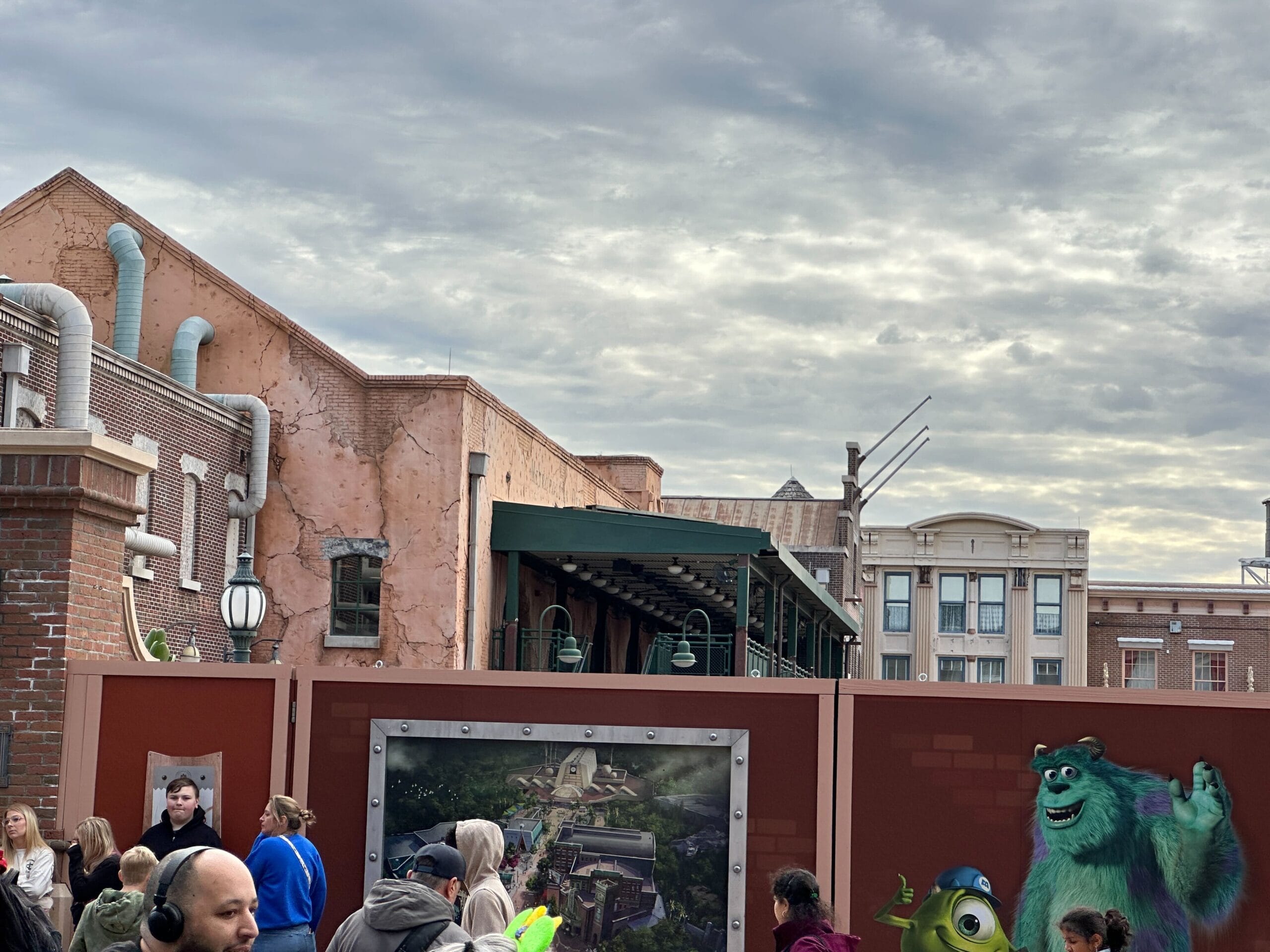 The land’s E-ticket attraction will be a roller-coaster through the Monsters, Inc. door vault. It will be Disney’s first suspended and first vertical lift coaster. It’s under construction in a former parking lot outside the bounds of Muppets Courtyard.