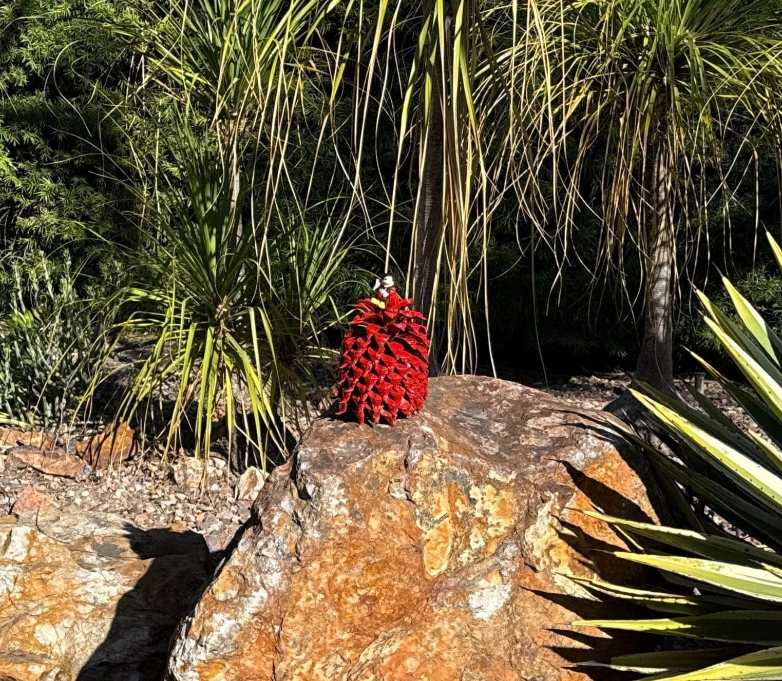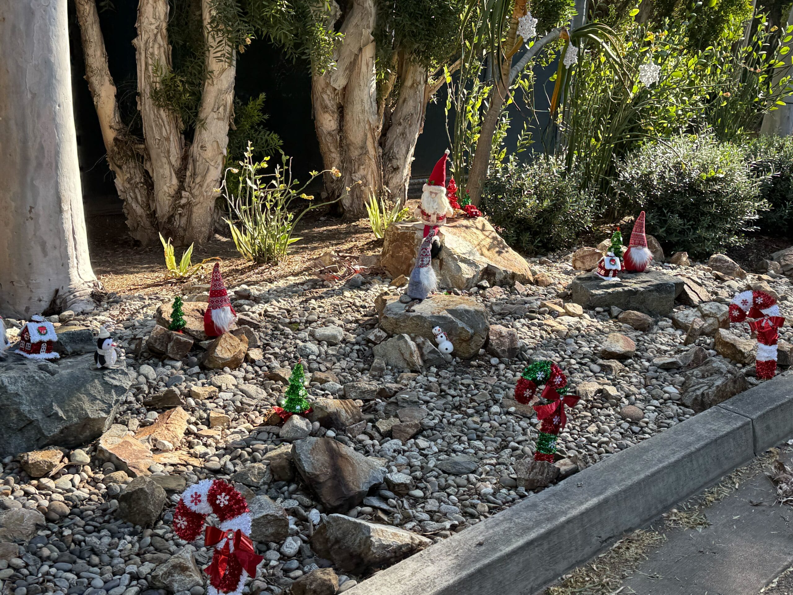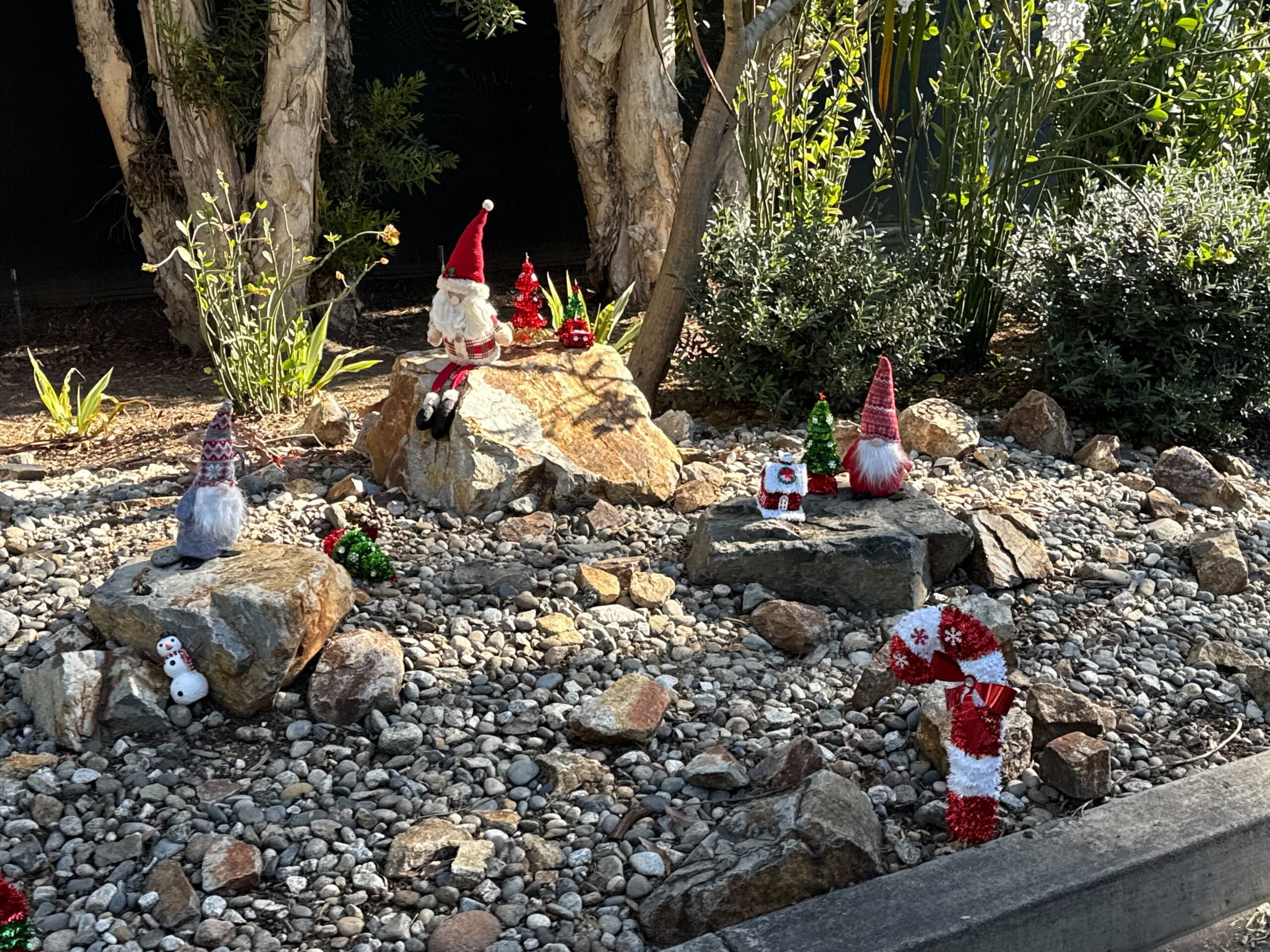 On the right side of the village, there was also a Santa Claus gnome. His legs are much longer than the others, and he is sitting on the highest rock.
