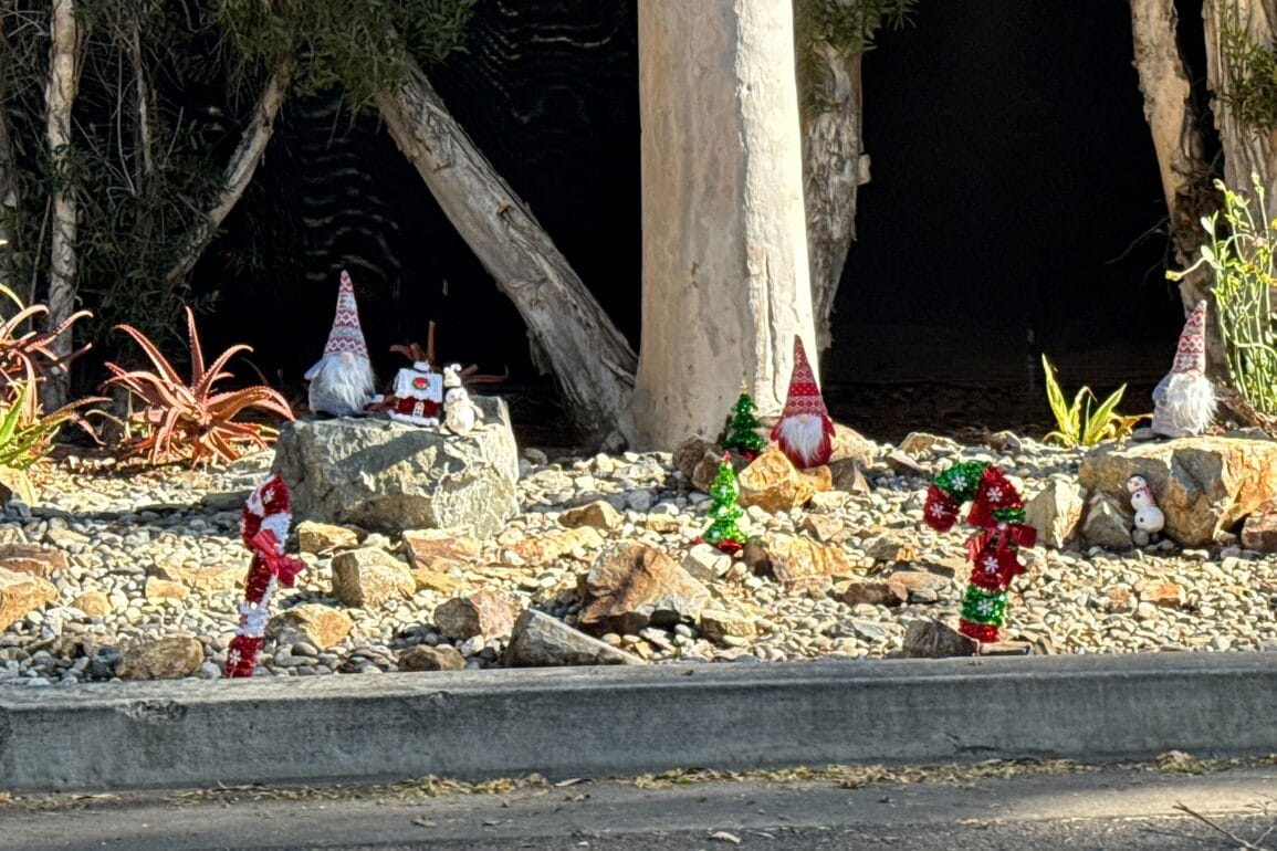 In addition to putting out the gnome village, Bill also told our reporter that he places a Mickey pine cone out as well; the pine cones are sourced from his hometown of Lake Arrowhead. If kids spot it and let him know what color it is, they’ll receive a candy cane!