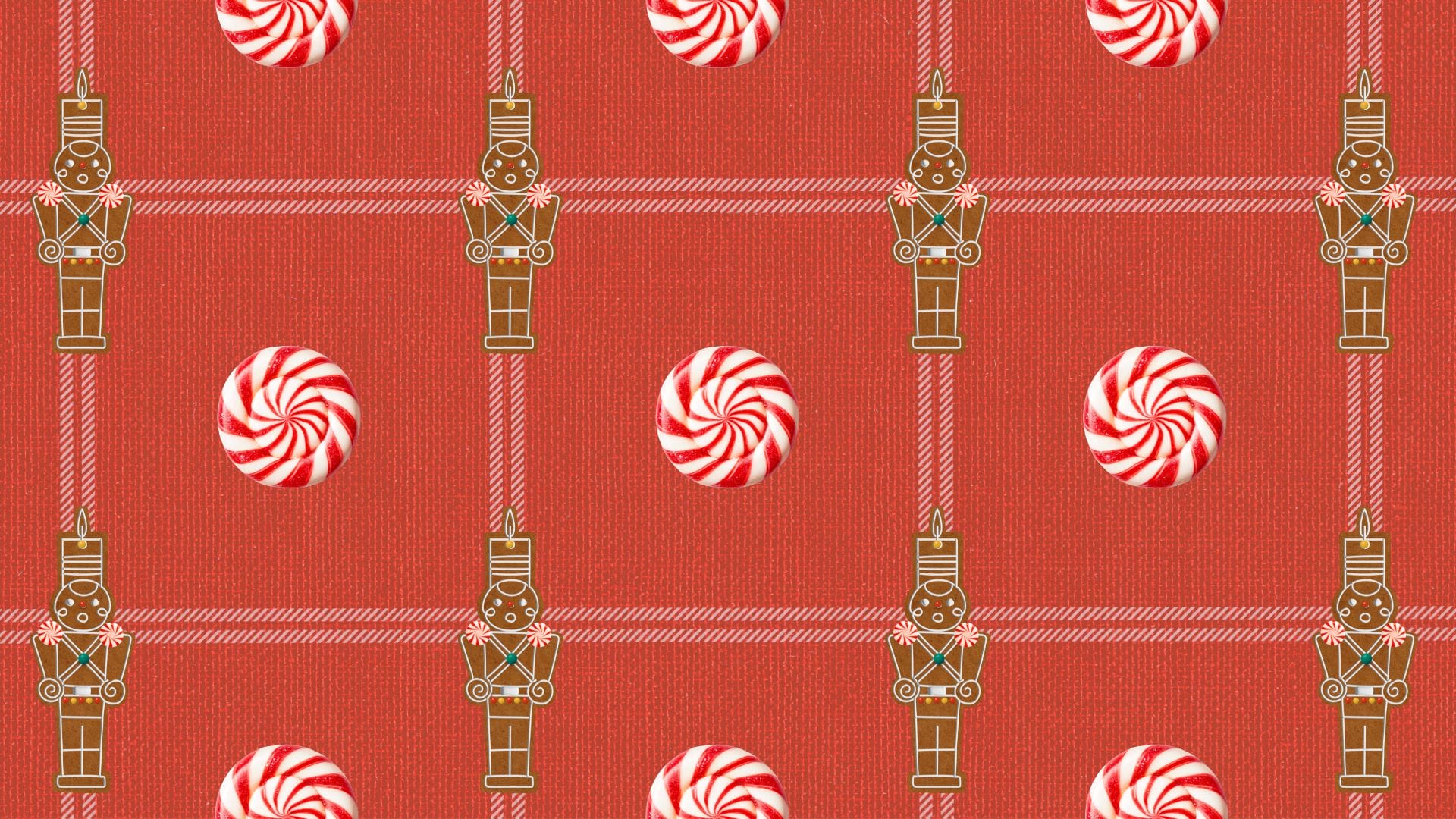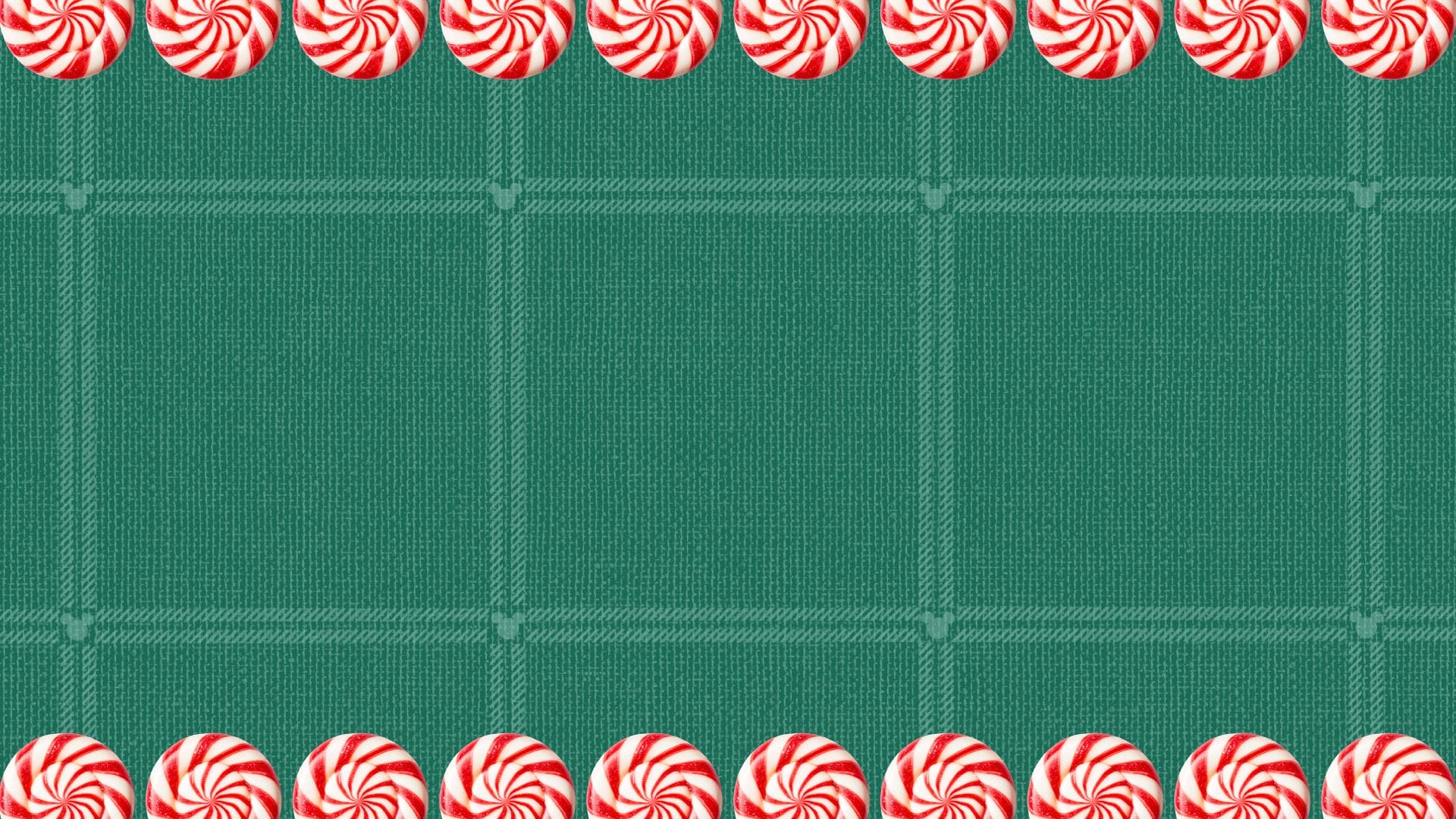 Many of the wallpapers show different holiday iconography, such as gingerbread toy soldiers, peppermints, plaid wrapping paper with hidden Mickeys, and wallpapers that depict wrapped gifts.