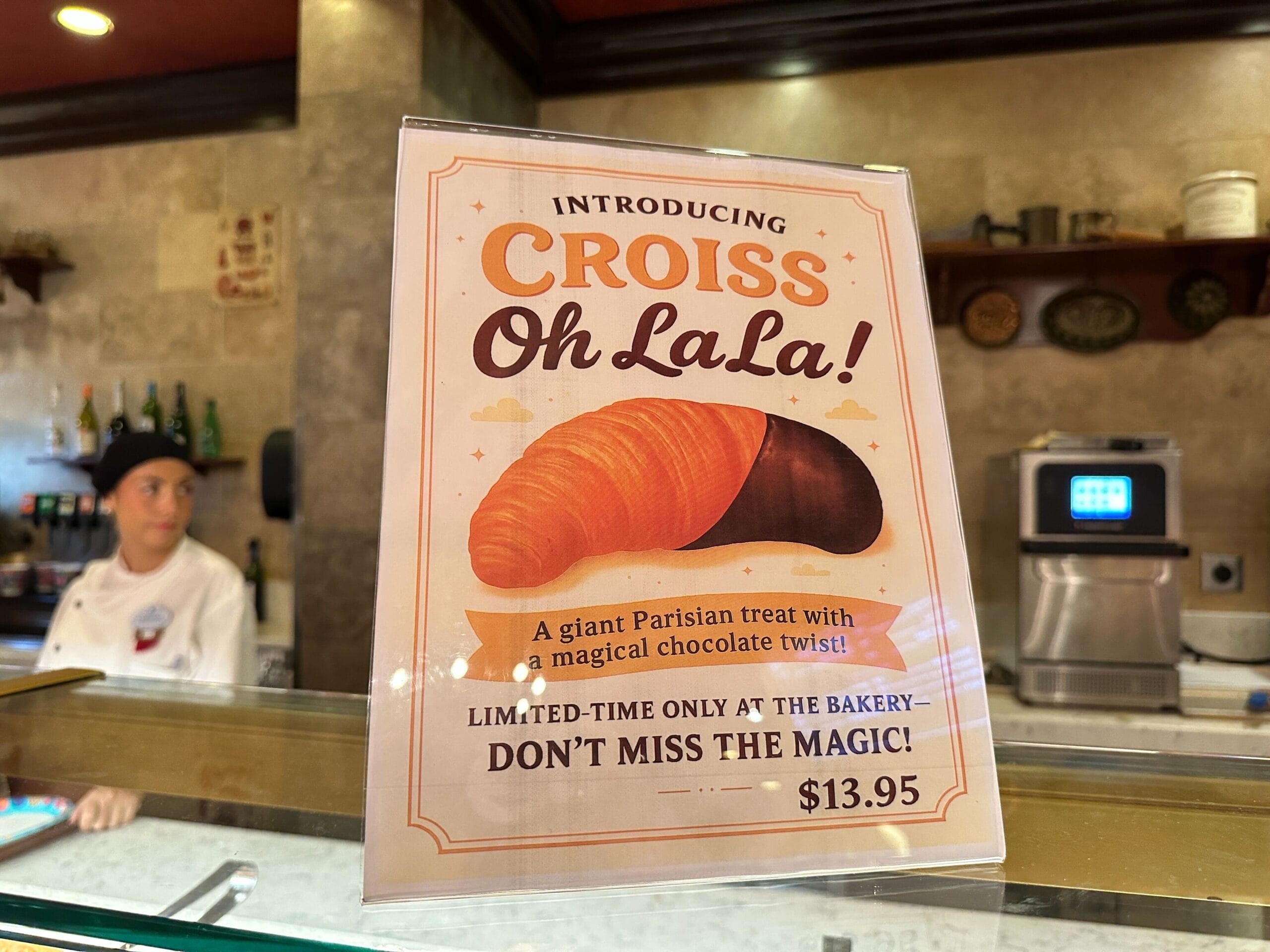 We were informed by Cast Members at Les Halles Boulangerie-Patisserie that the giant croissants will be unavailable for approximately the next two weeks. They will return after the holidays are over in early January 2026. We speculate that making the croissants may not be able to keep up with the hectic holiday crowds.