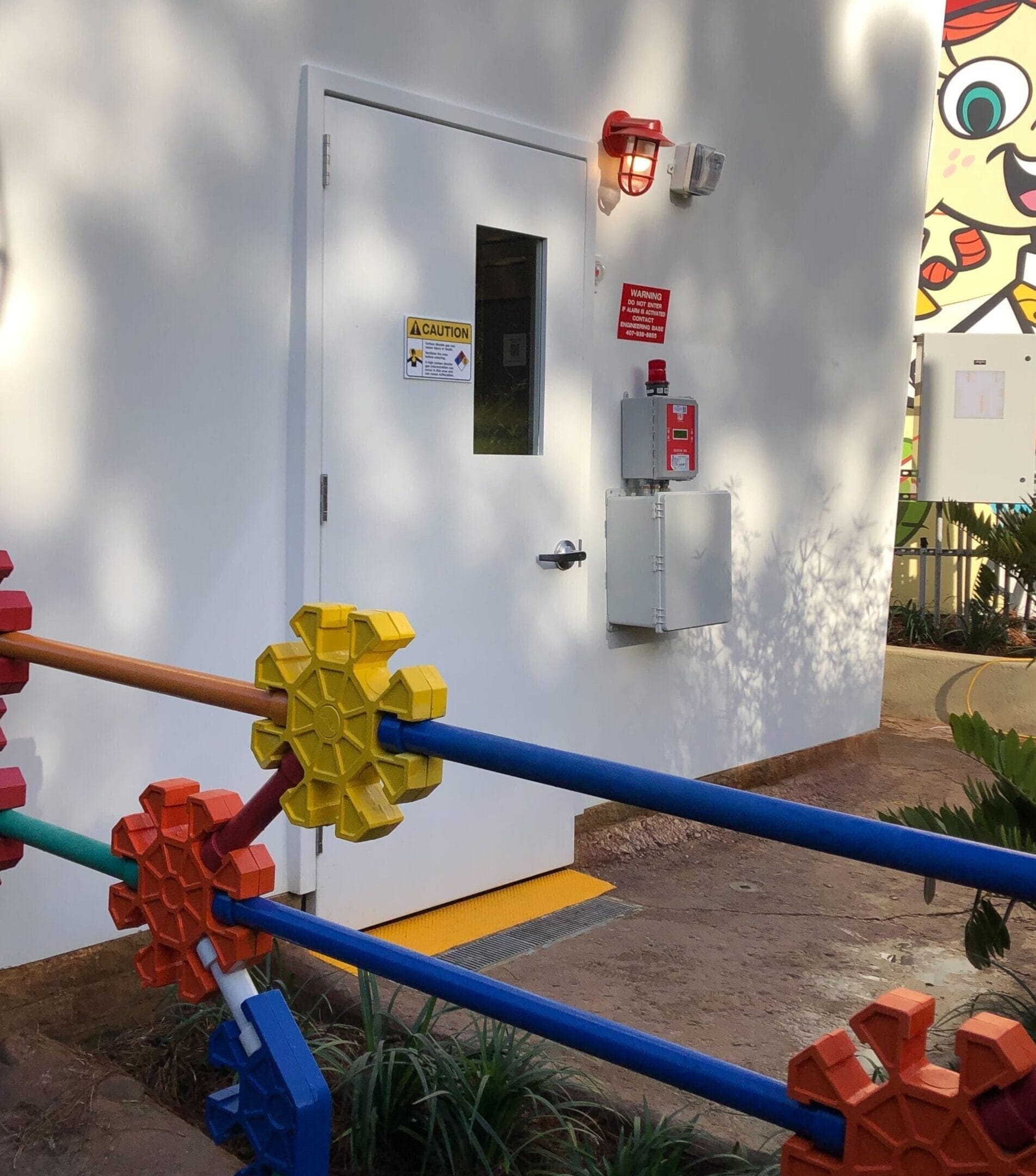 A caution sign has been added to the employee entrance of the kiosk. It appears to be a carbon dioxide danger warning.