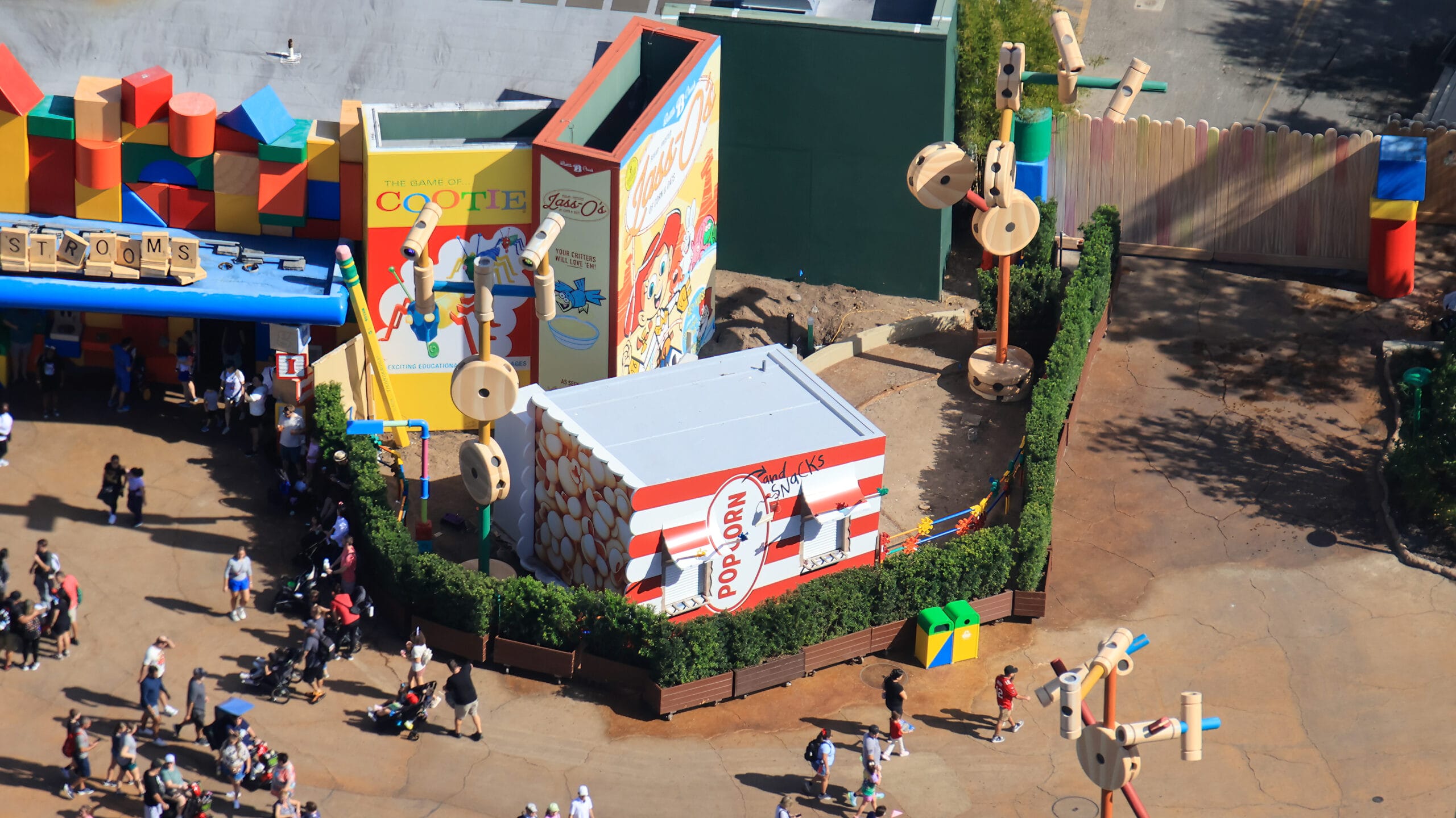 A new aerial photo of the Toy Story Land snack kiosk at Disney’s Hollywood Studios has been posted by photographer bioreconstruct.