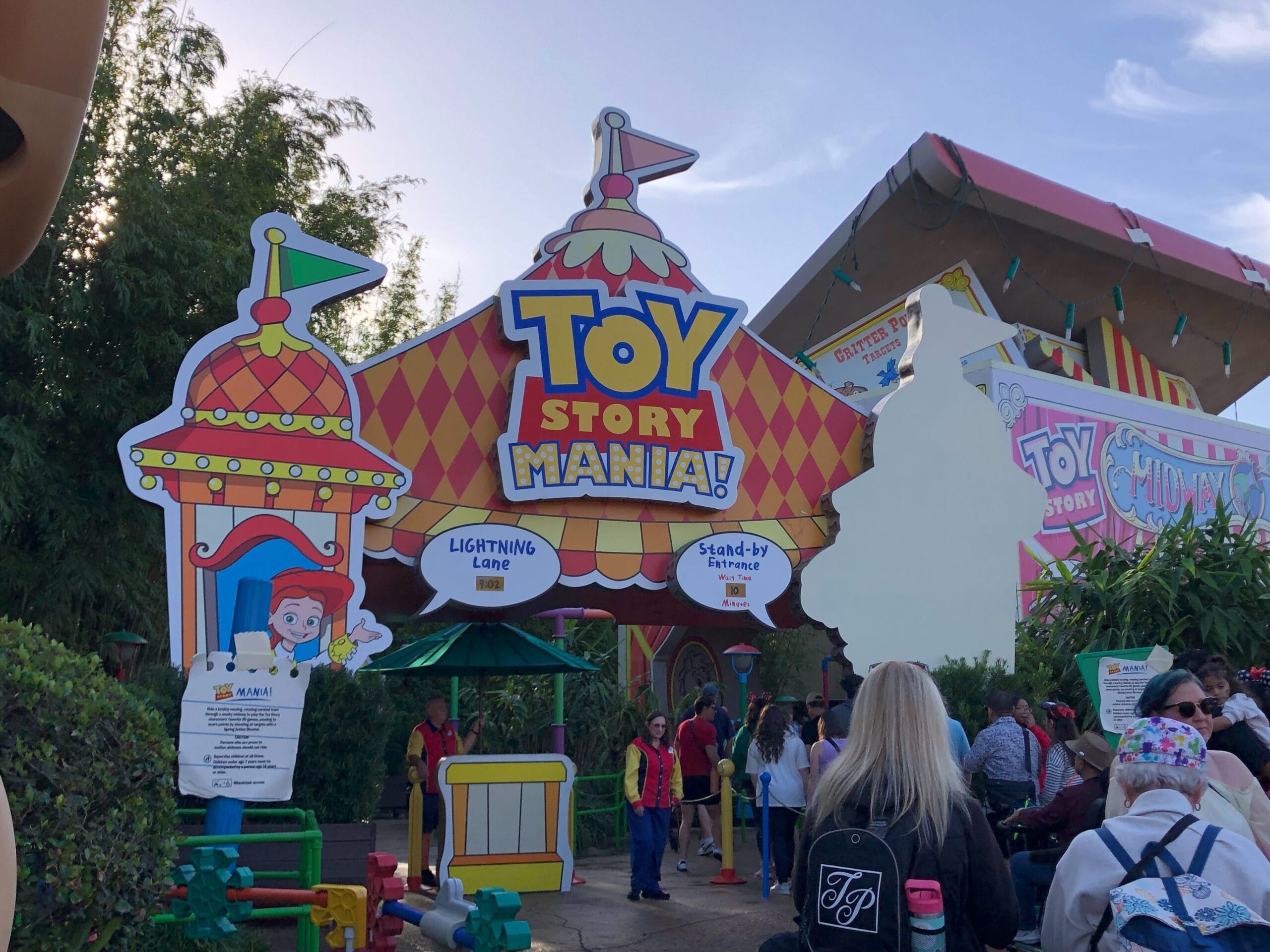 Toy Story Mania! is a 4D shooting attraction themed to a playset Andy has set up in his backyard and bedroom. It opened at Disney’s Hollywood Studios and the original 2008 entrance was in what is now Pixar Plaza.