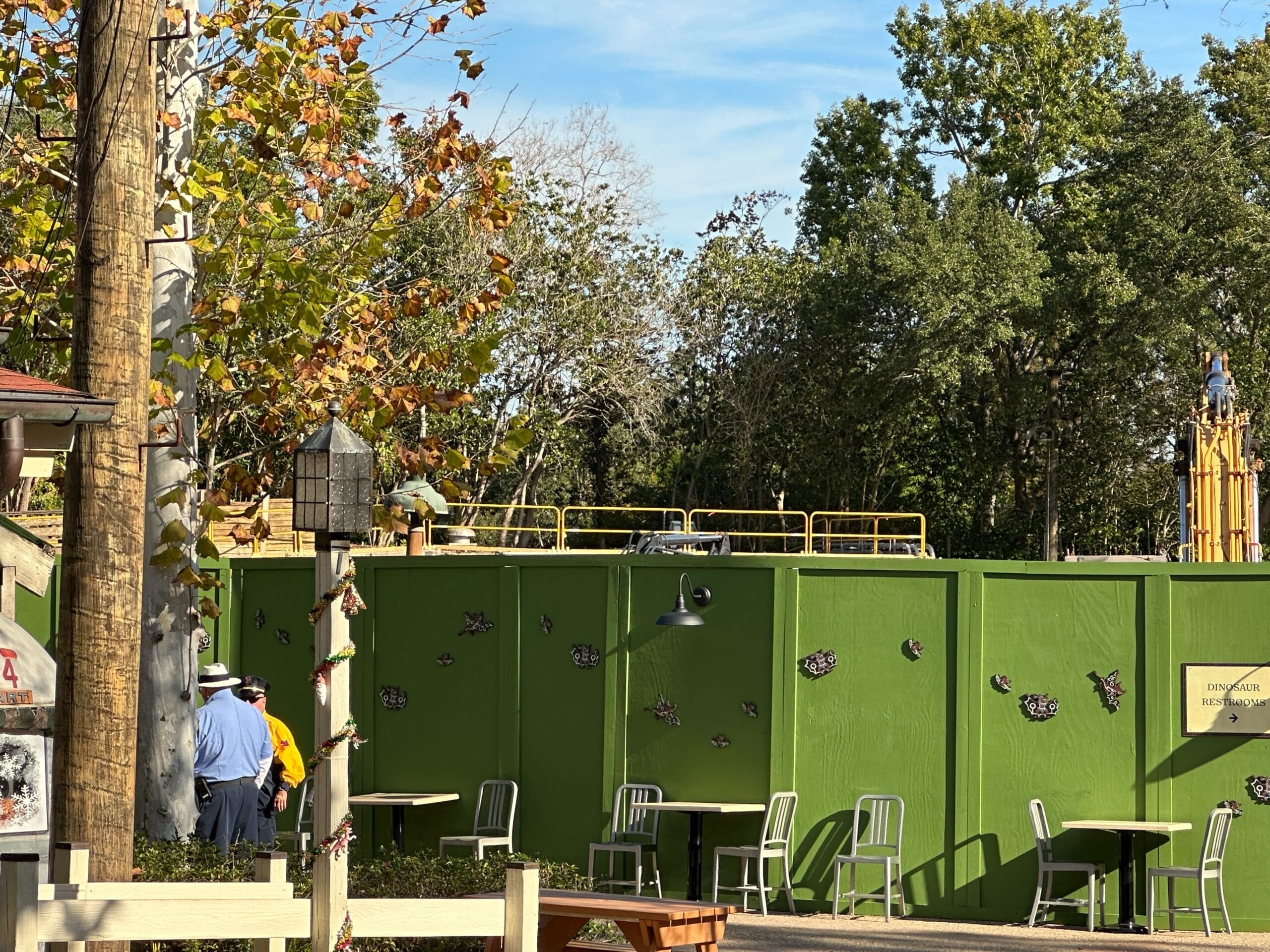 A vertical structure for the new Encanto-themed ride has risen into view behind construction walls in DinoLand U.S.A. The Disney’s Animal Kingdom land is being transformed into a new Tropical Americas area.