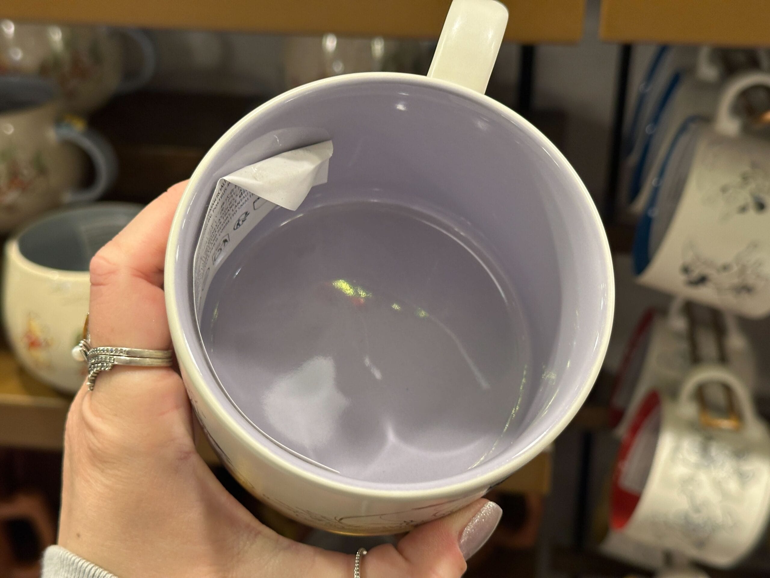 The inside of the mug is a light gray-purple color.