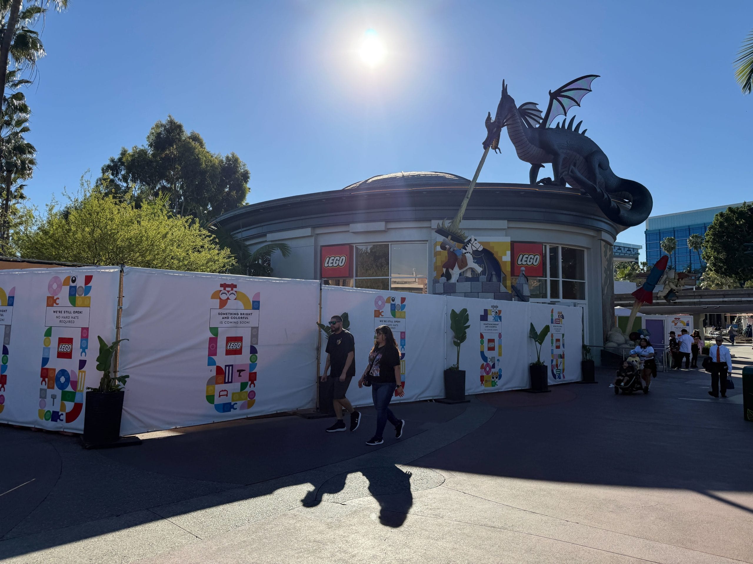 Speaking of the LEGO Store, it’s currently surrounded by fencing as the facade goes through a refresh. We previously reported on updates to the Prince Phillip and Maleficent display. Although it’s been a month since then, work continues outside the shop.