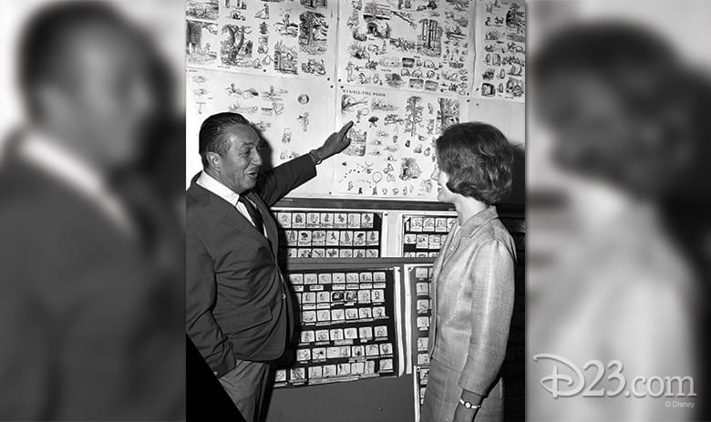 Walt Disney overheard one of his daughters giggling while reading a book. He found out that the book she was reading was Winnie-the-Pooh. Her delight at the stories and characters inspired him to acquire some rights to the bear in 1961, using the unhyphenated name “Winnie the Pooh.”