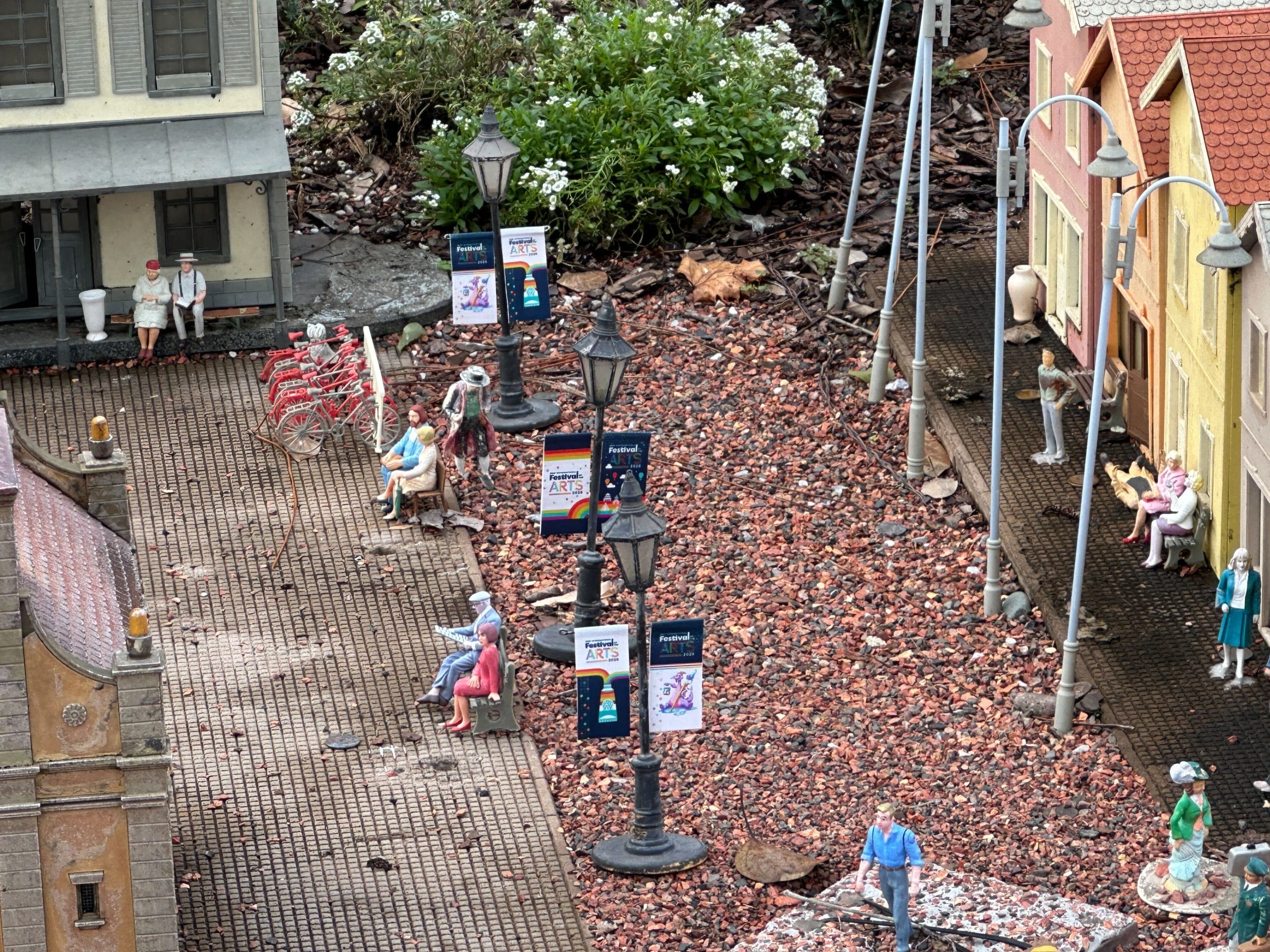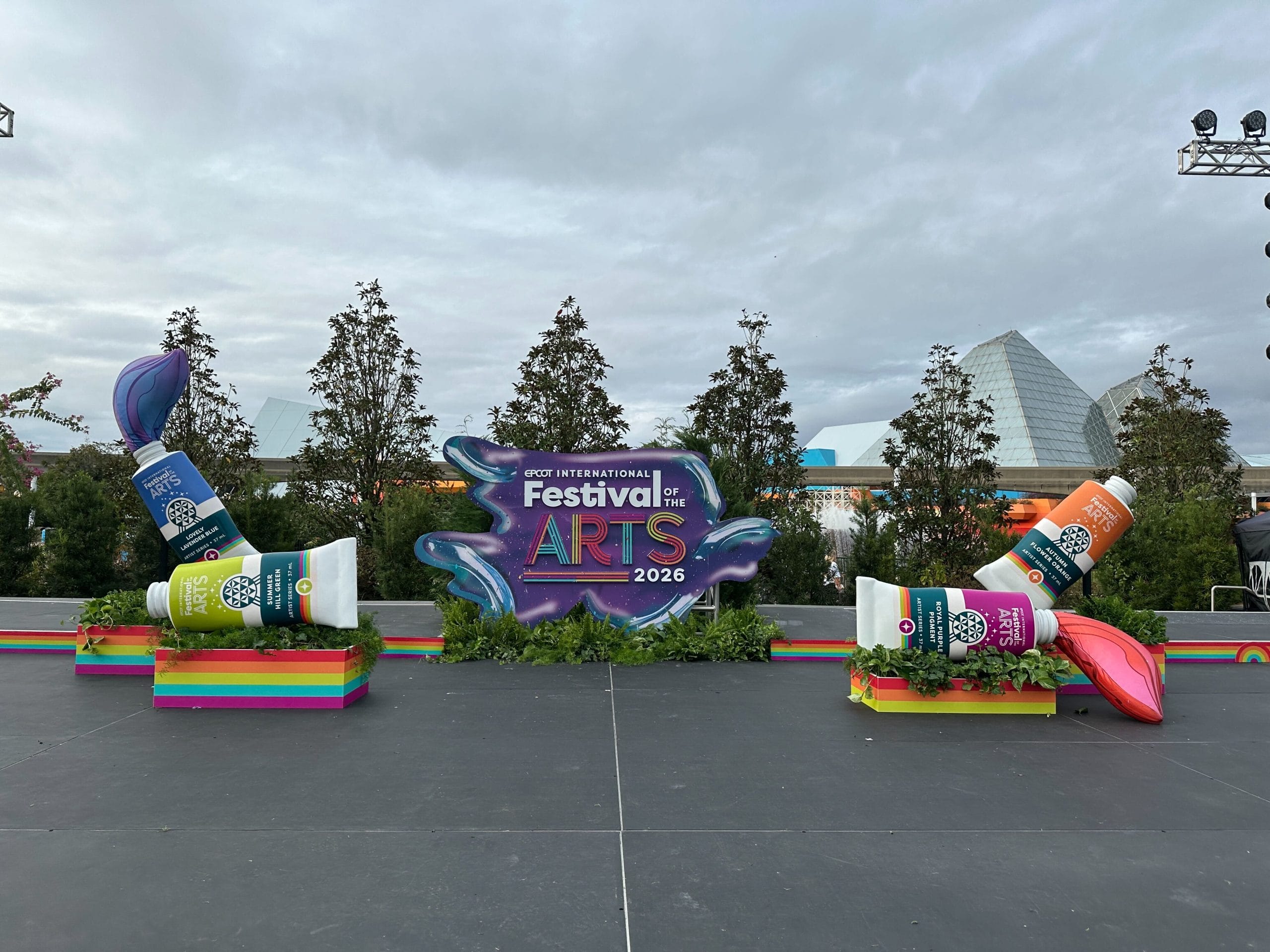 Our reporter spotted multiple decorations added to EPCOT as it prepares for the 2026 Festival of the Arts. We noticed these decorations at the entrance, around World Showcase, and at the CommuniCore festival stage. The miniature train village in the Germany Pavilion has joined in on the decorations as well.