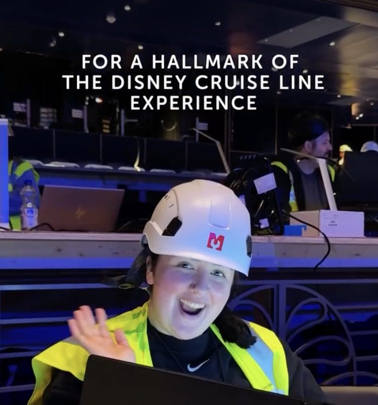 Next, we get a look at Imagineers testing equipment for a “hallmark of the Disney Cruise Line Experience.”