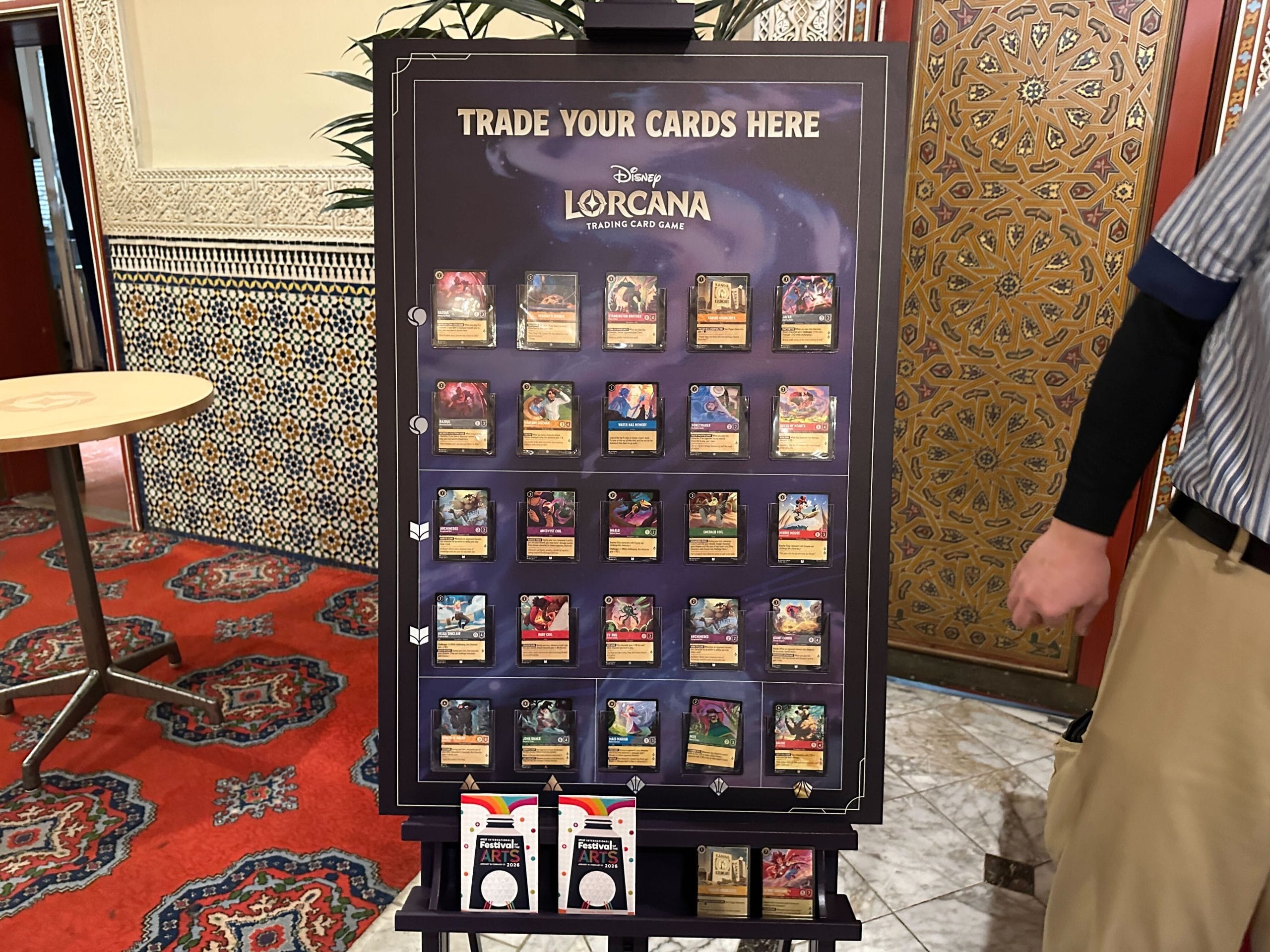 You can trade freely with other guests, but there’s also a designated station for trading with a cast member, just like a pin board. You can pick a card on the board and replace it with one of your own cards.