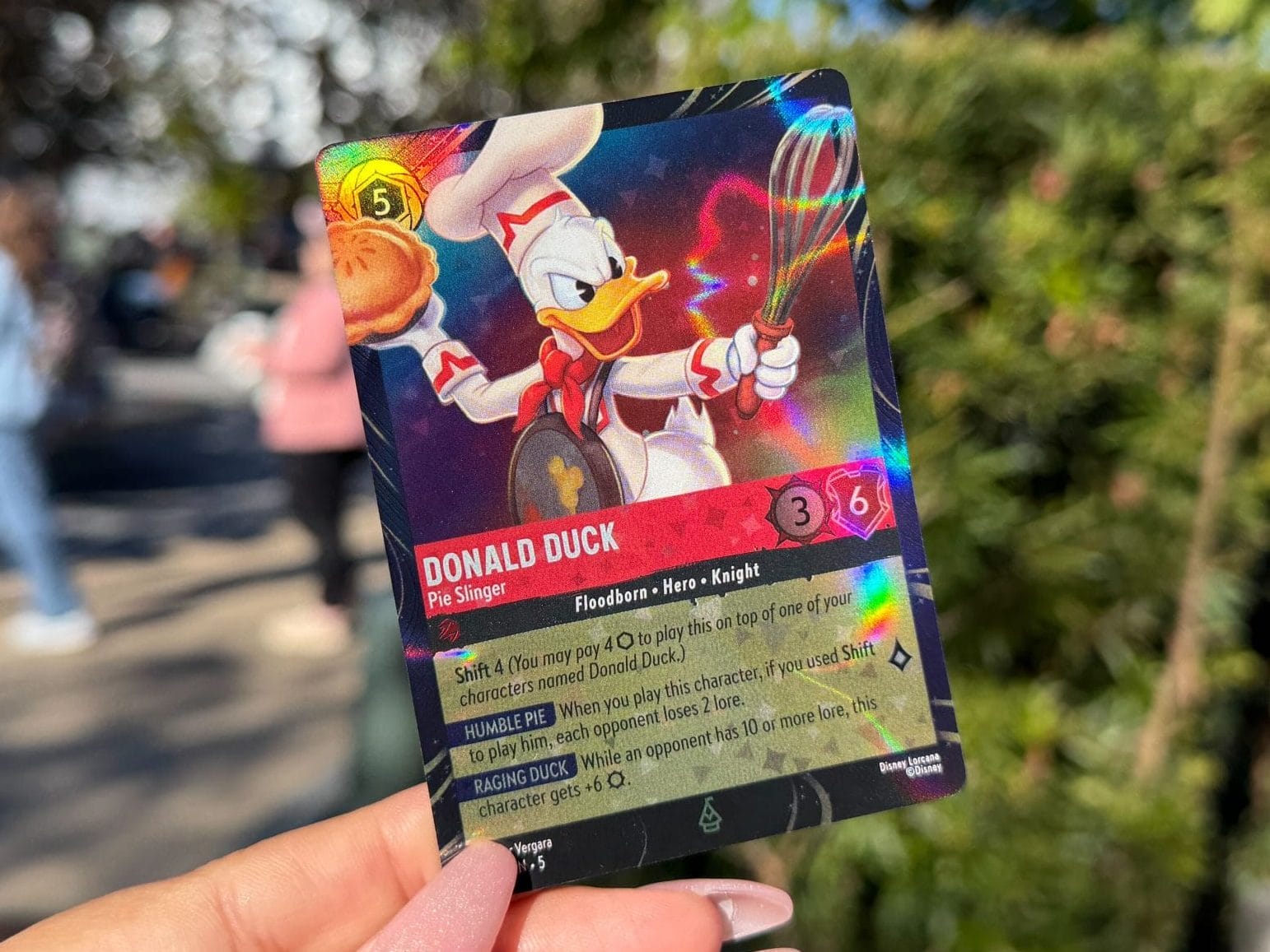 After completing a Collection Quest, guests can show their four collected cards to a cast member at the Illumineer’s Lounge or Figment’s Inspiration Station in The Odyssey to receive the limited edition Donald Duck – Pie Slinger Magical Places card.