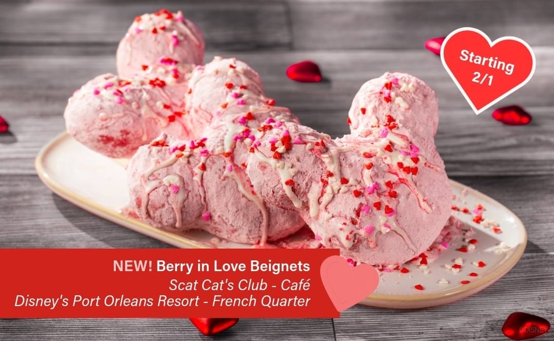 A new Valentine’s Day Brownie will be at Gasparilla Island Grill in Disney’s Grand Floridian Resort & Spa. And the new Berry In Love Beignets will be at Scat Cat’s Club – Cafe at Disney’s Pot Orleans Resort – French Quarter.