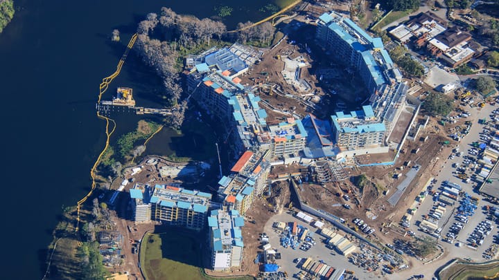 Aerial photographer @bioreconstruct has been busy providing updates on construction projects around Walt Disney World. Among those is an update on Disney Lakeshore Lodge.