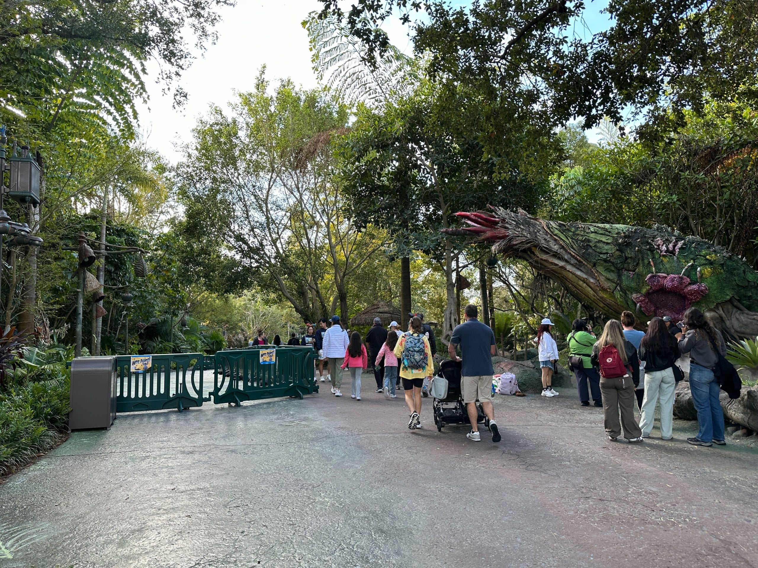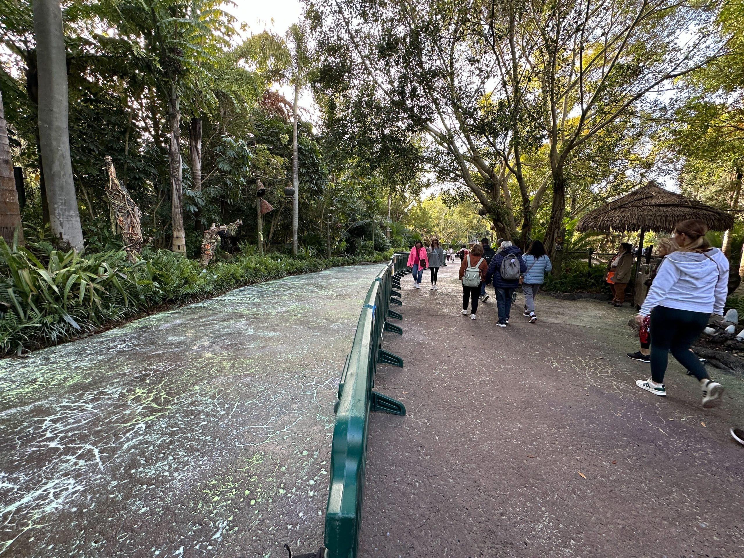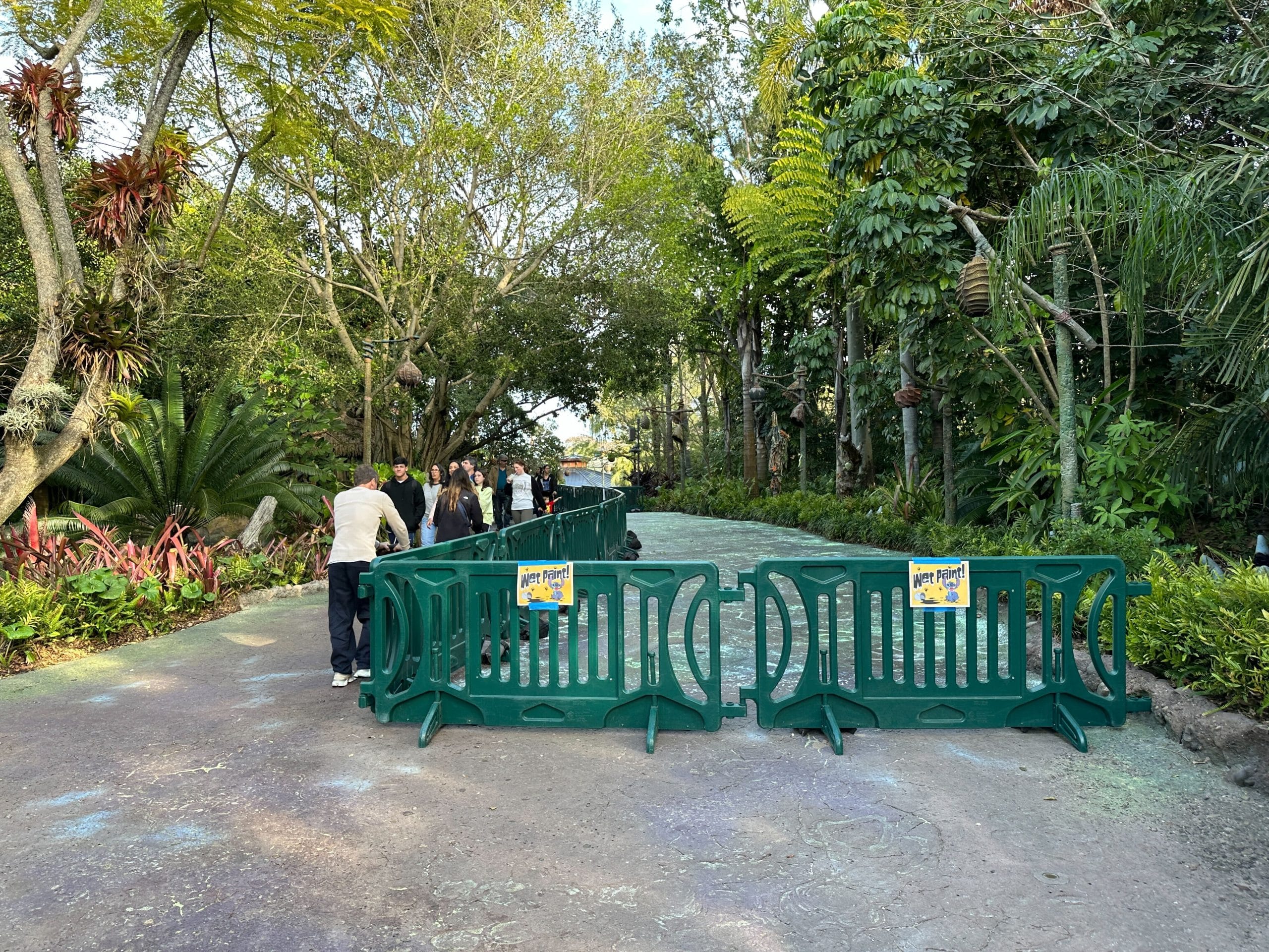 Right now, crews have completed the left side of the front entrance path to Pandora from Discovery Island. We spotted green barriers dividing the pathway this morning, protecting the wet paint. We anticipate that the right side of the path will follow suit once the left side is dry enough for foot traffic.