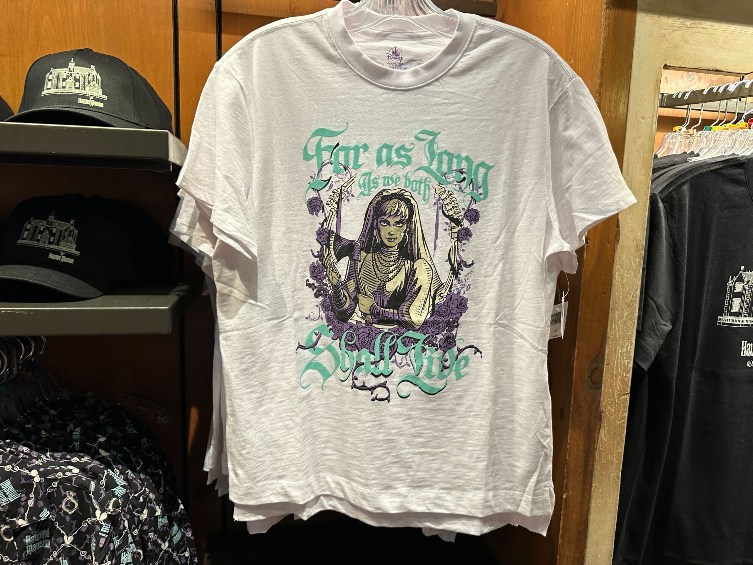 We found both of the shirts at Momento Mori in the Magic Kingdom, located right outside the attraction.