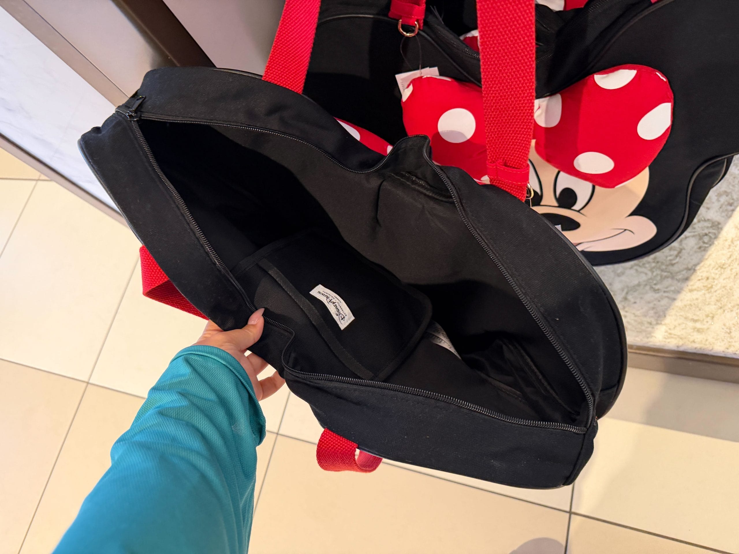 The interior hanging pocket now has a white label with the Disney Parks wordmark.