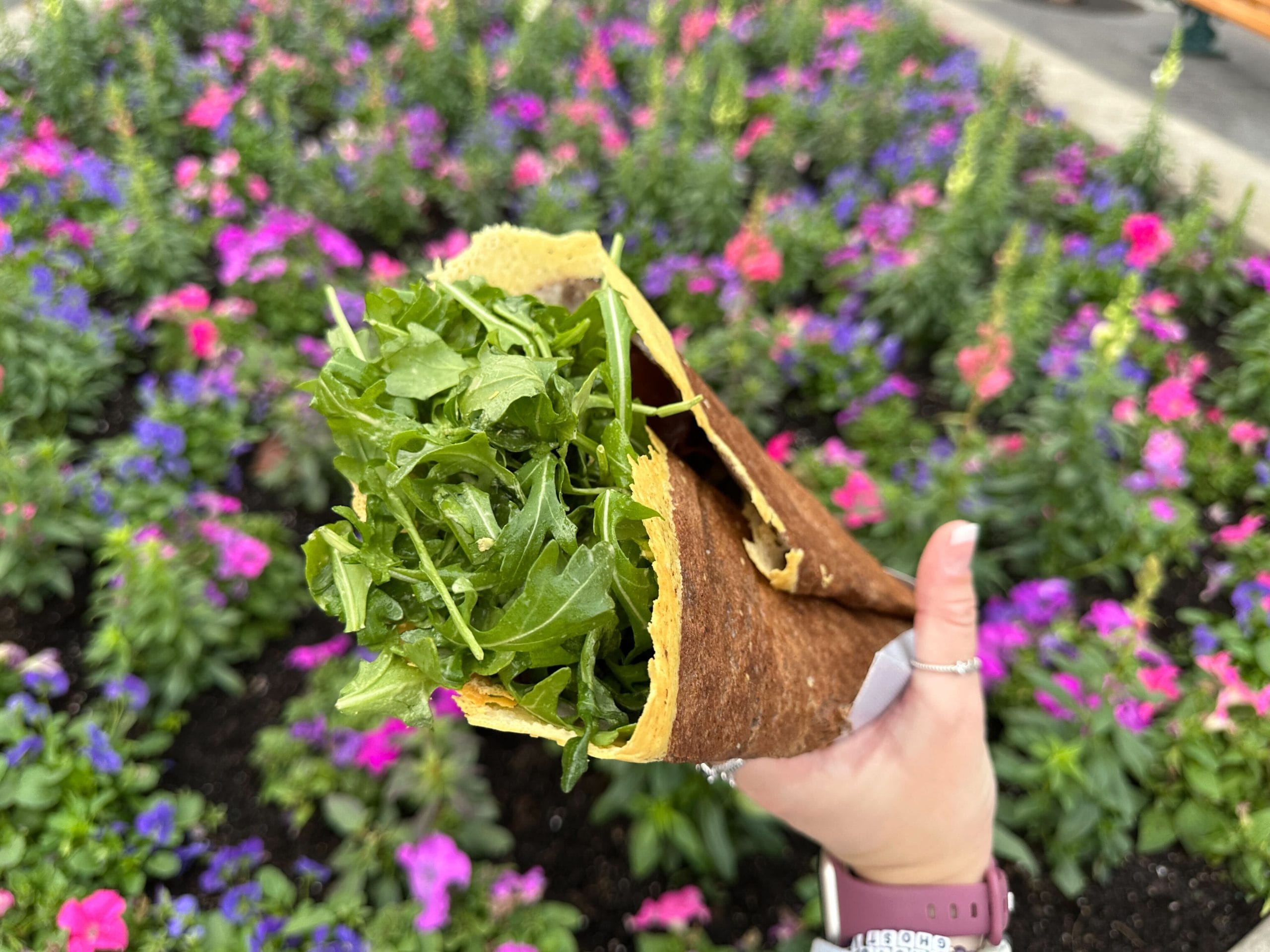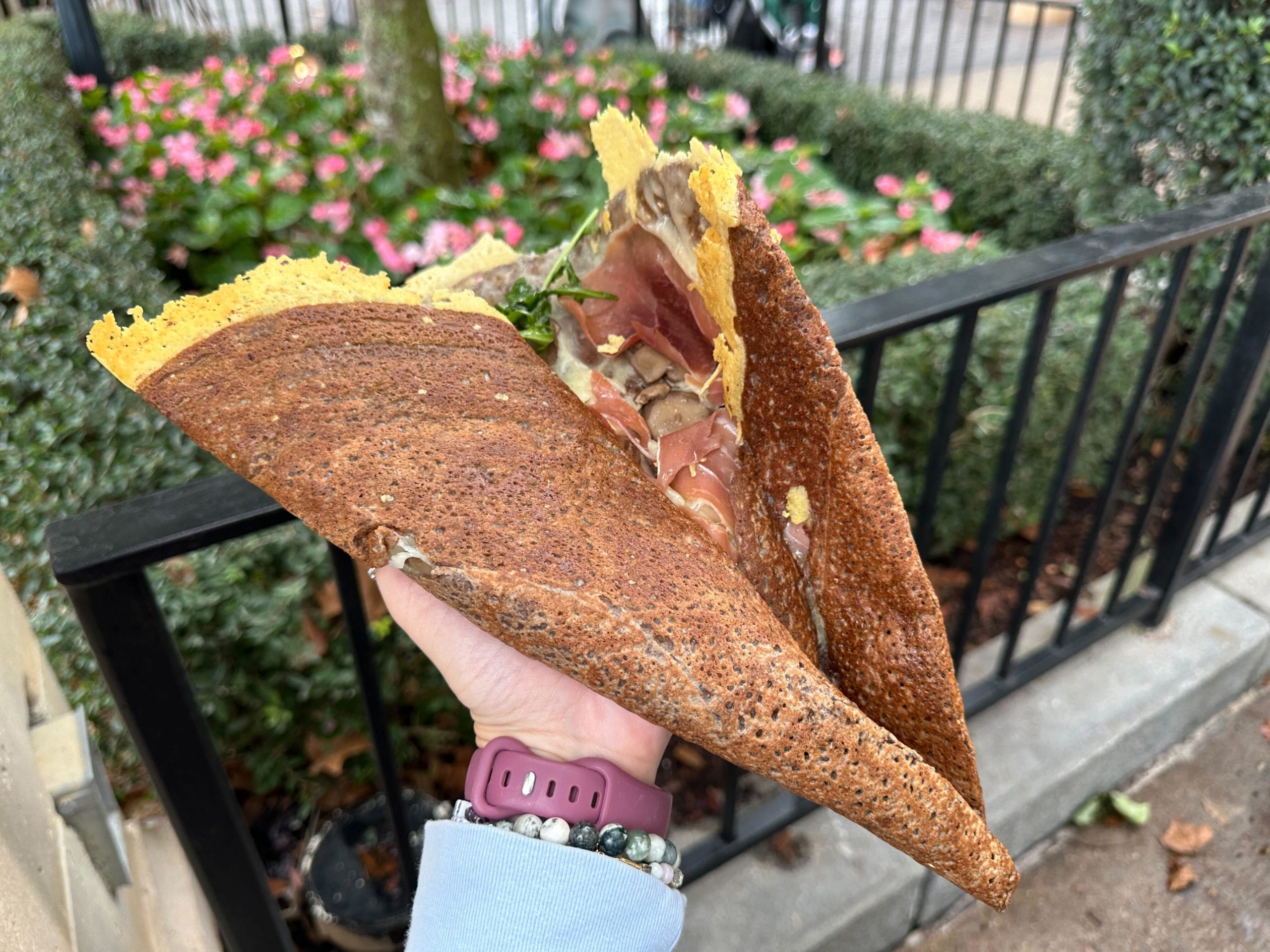 The France pavilion of EPCOT has a new giant savory crepe called La Bête de Crêpe — “The Crepe Beast.” This is available from Crêpes À Emporter by La Crêperie de Paris.