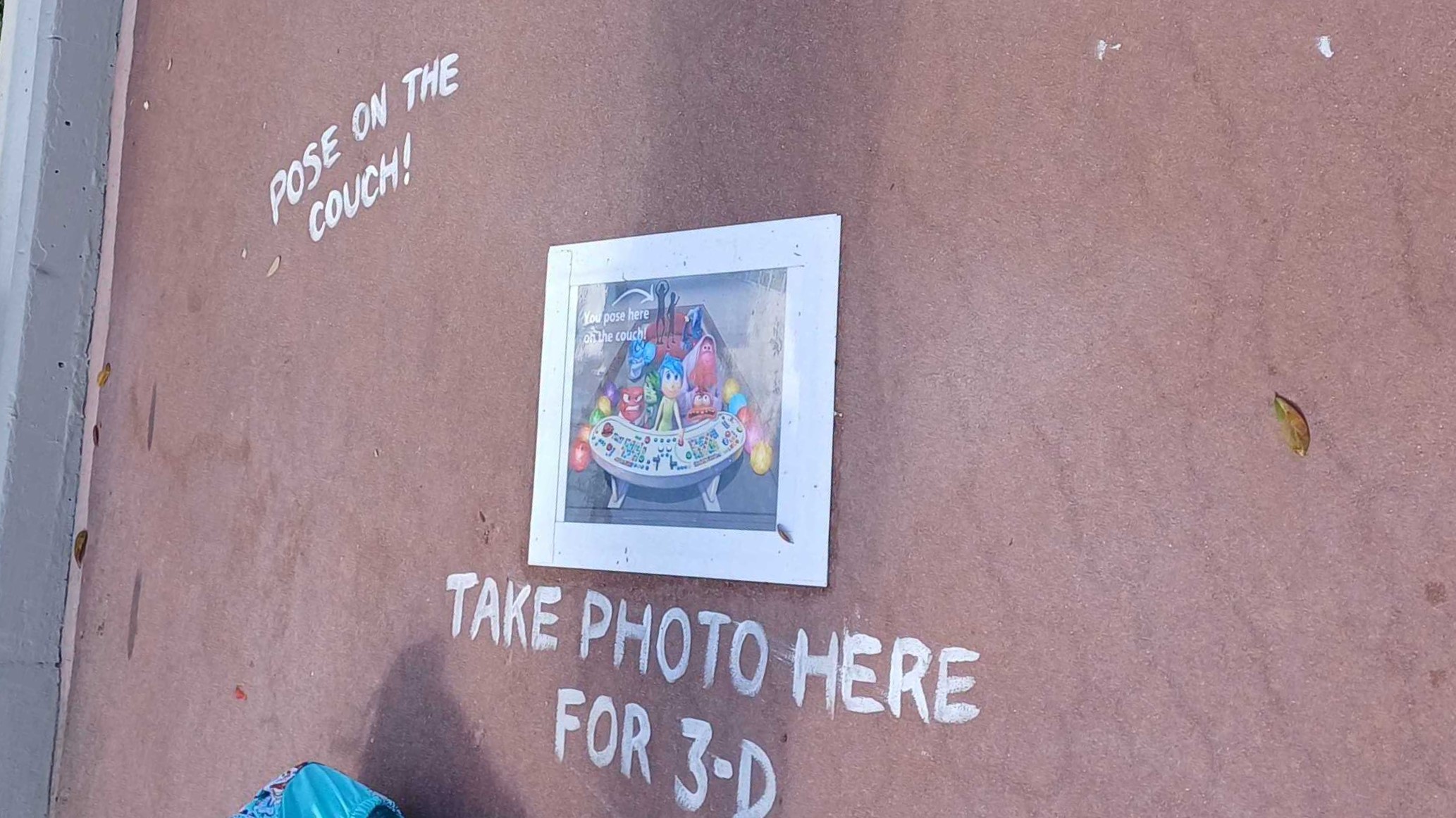 Guests are invited to stand behind the chalk art by the couch to get the 3-D effect.