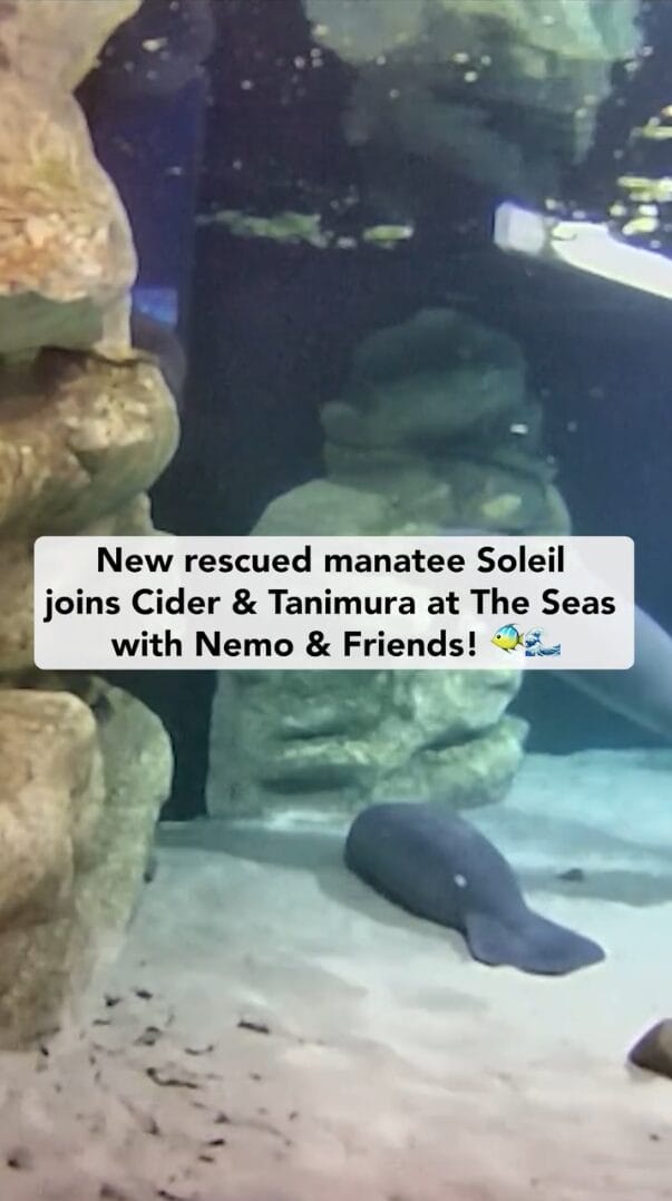 Notably, Soleil is not a new permanent resident of The Seas. As explained in Dr. Mark’s caption, the aquarium is now a short-term care facility working with the Manatee Rescue, Rehabilitation and Release Partnership and the U.S. Fish and Wildlife Service to rehabilitate injured or orphaned manatees with the intent of returning them to the wild.
