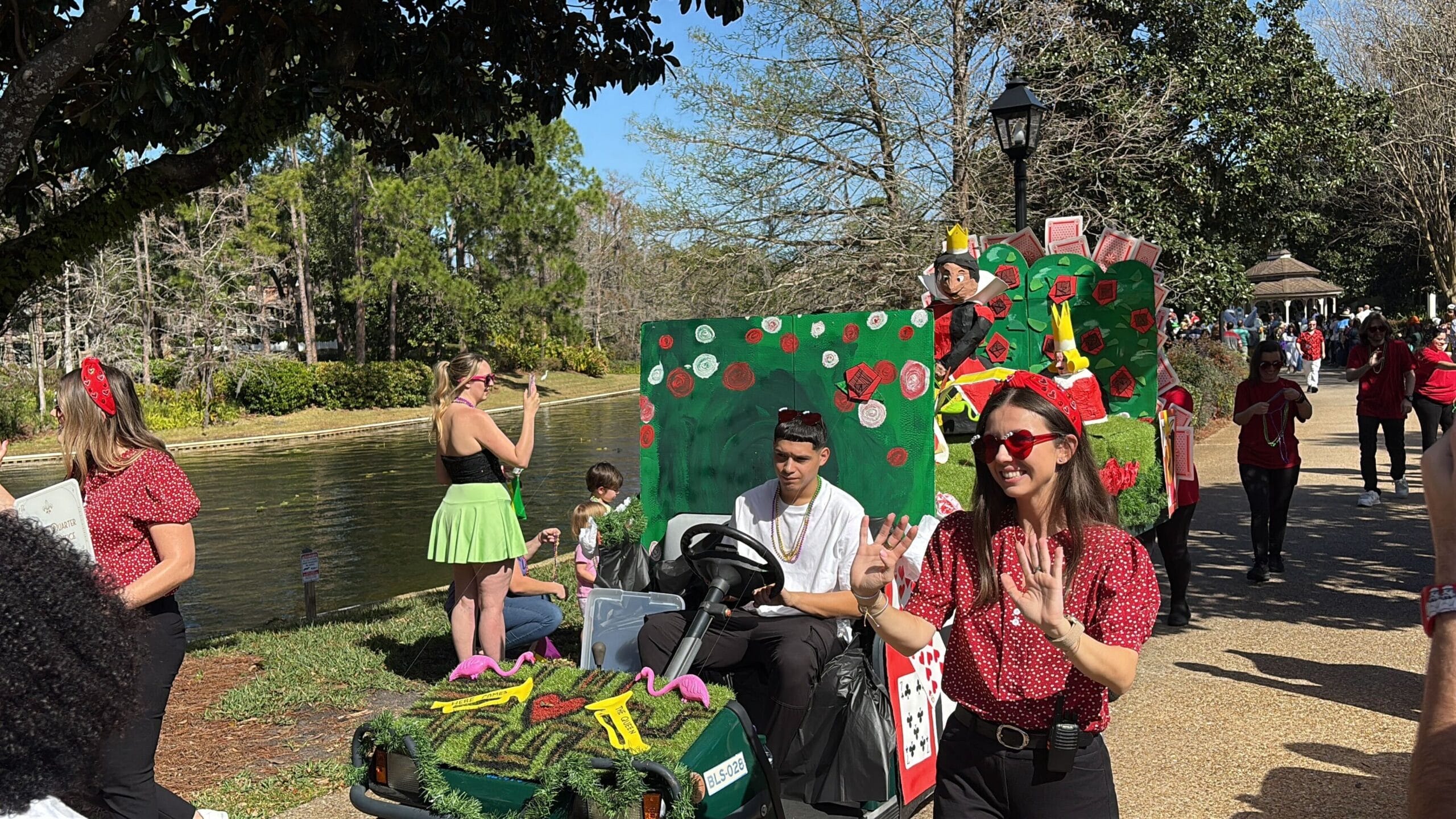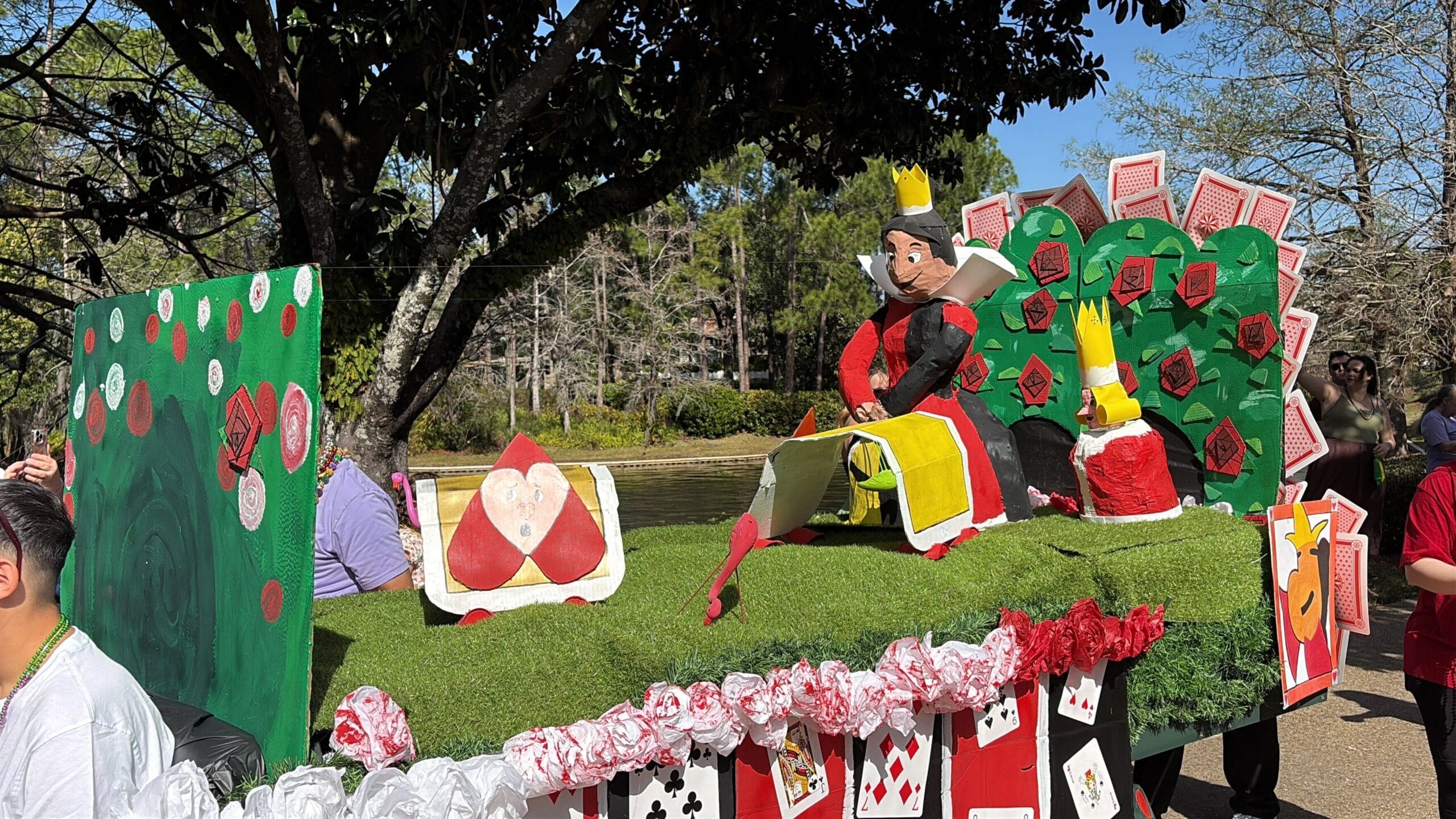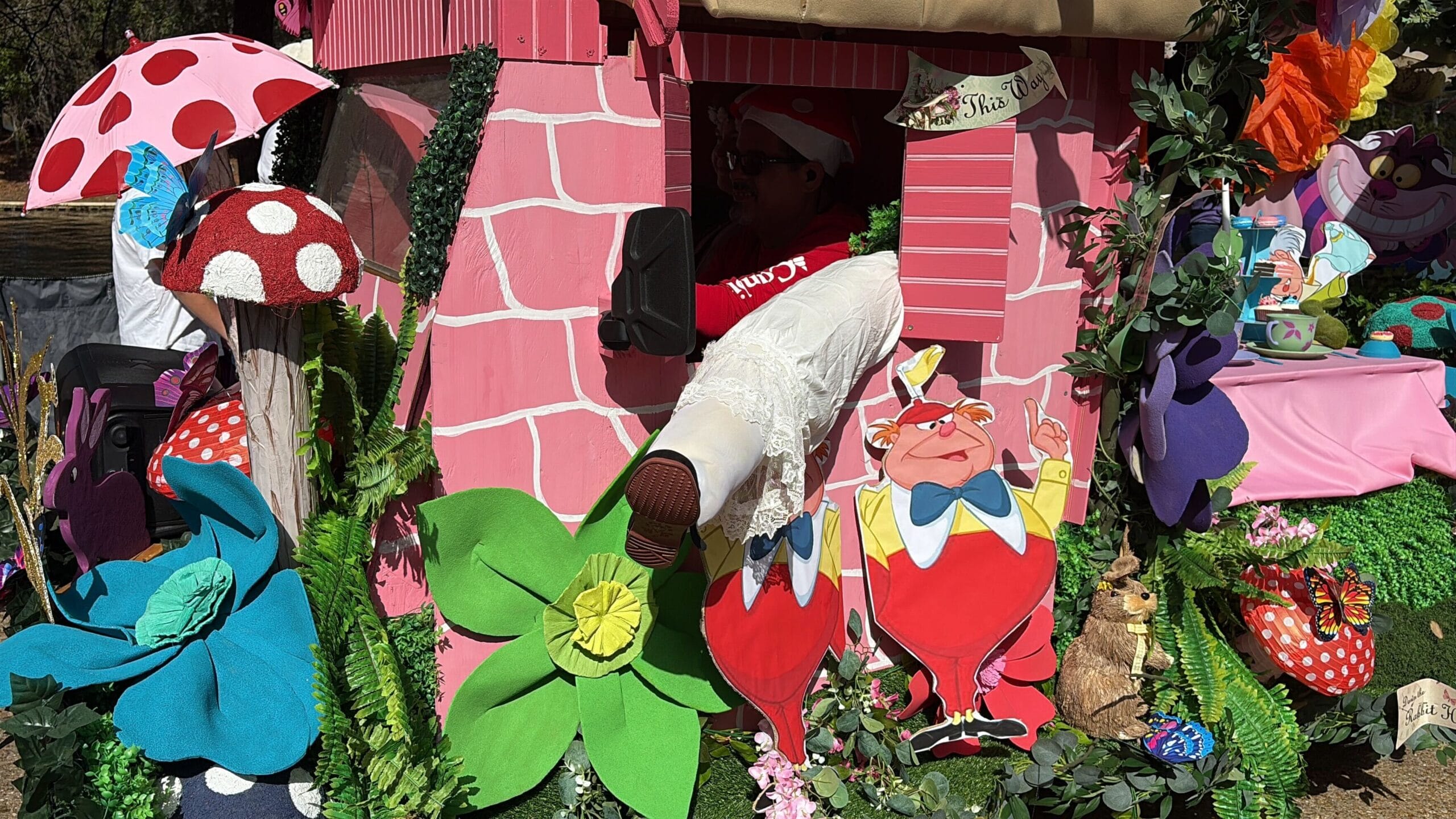 The Queen of Hearts also got her own float in this year’s parade. She is seen on the croquet court amongst her rose garden.