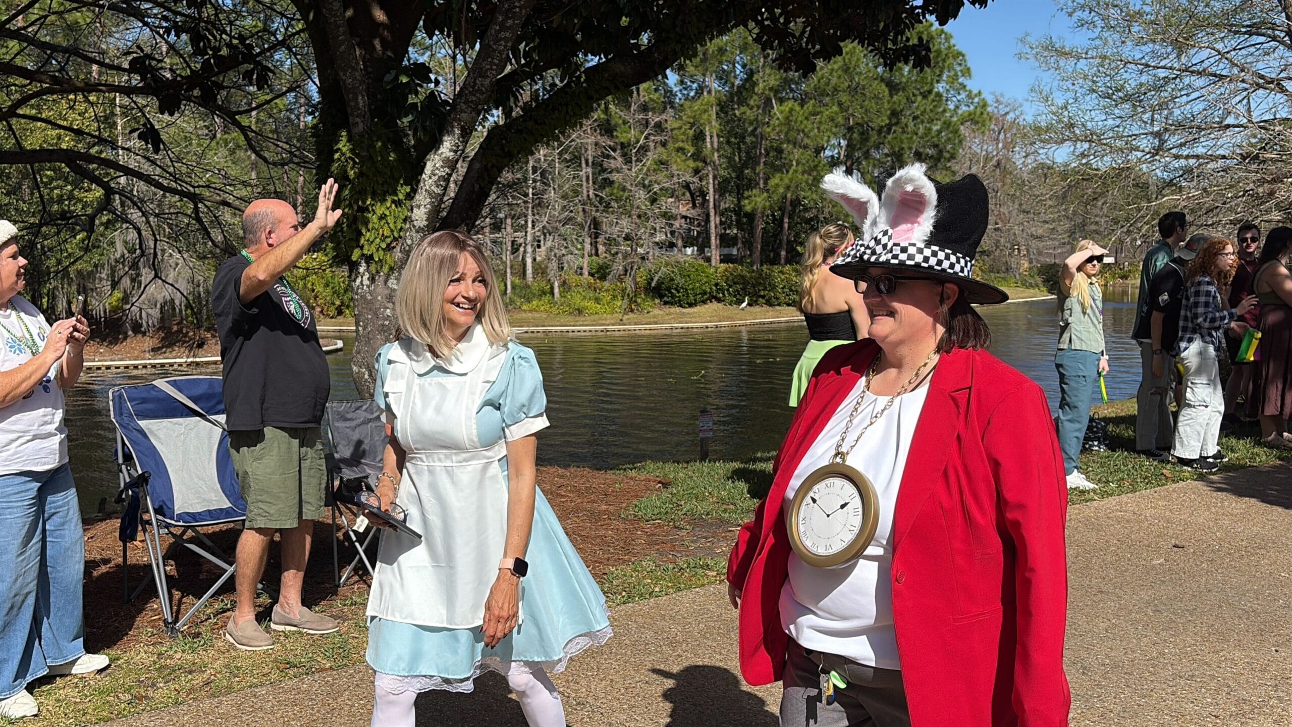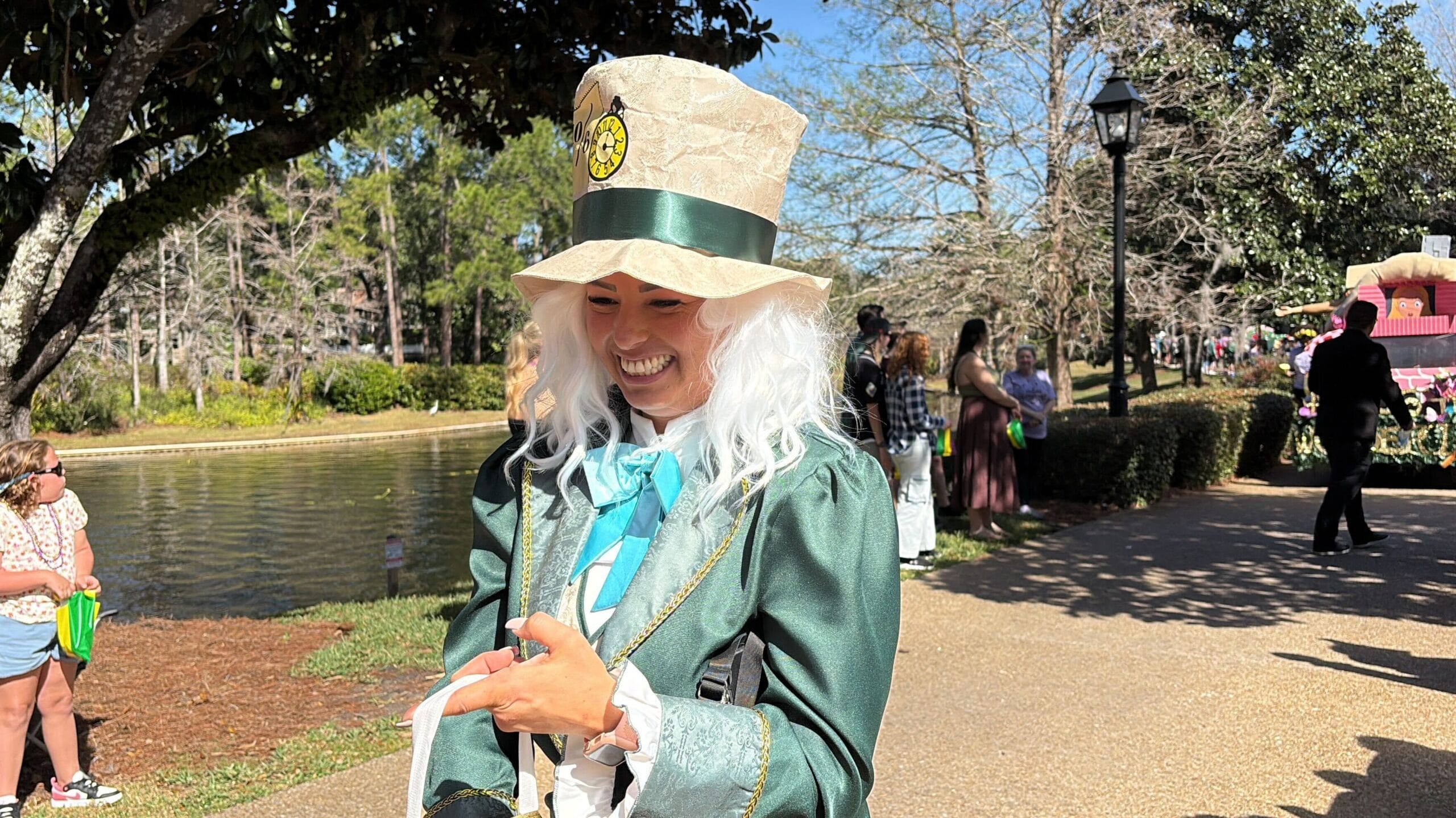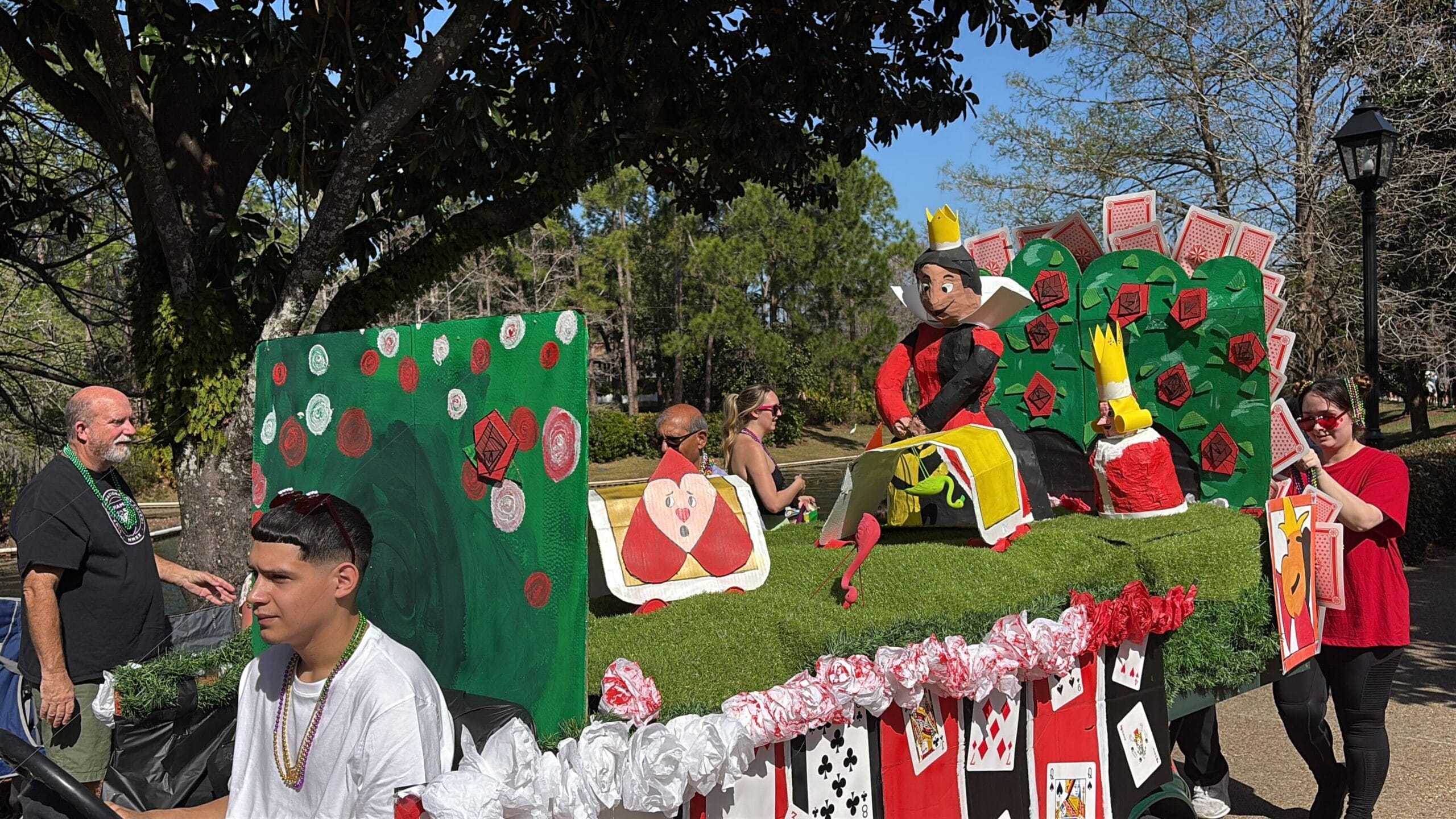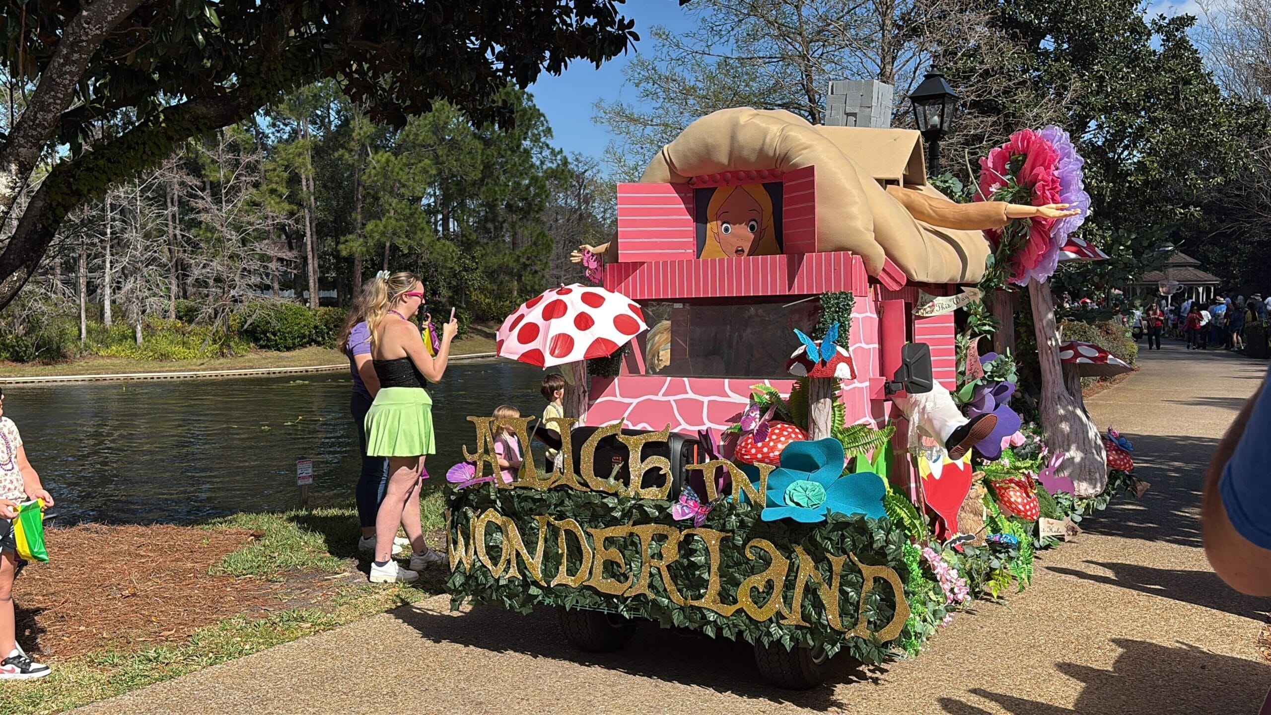 The Queen of Hearts also got her own float in this year’s parade. She is seen on the croquet court amongst her rose garden.