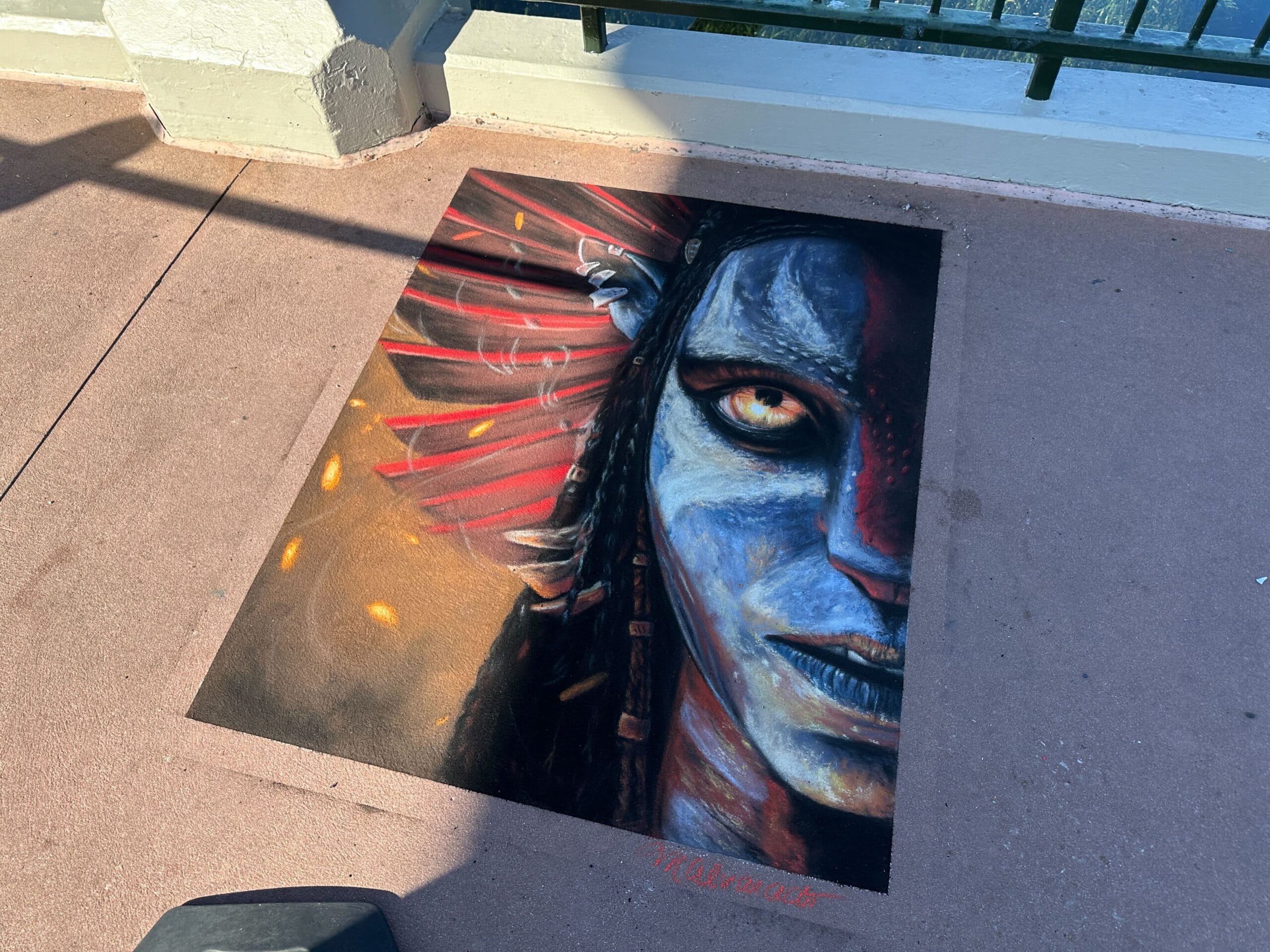Two photo-realistic chalk artworks feature Avatar: Fire and Ash characters.