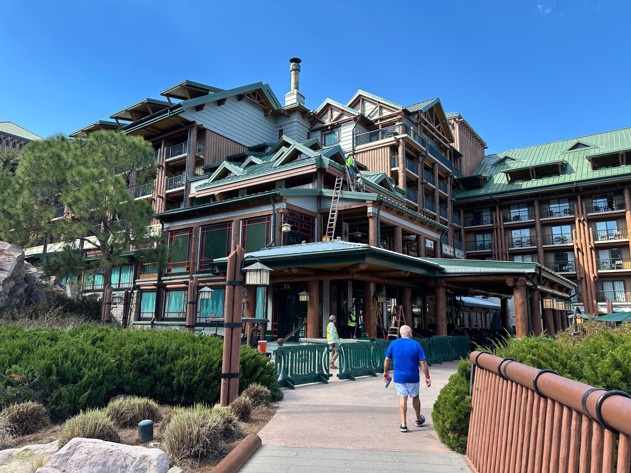 Crews Paint Disney’s Wilderness Lodge Exterior During Extended Refurbishment