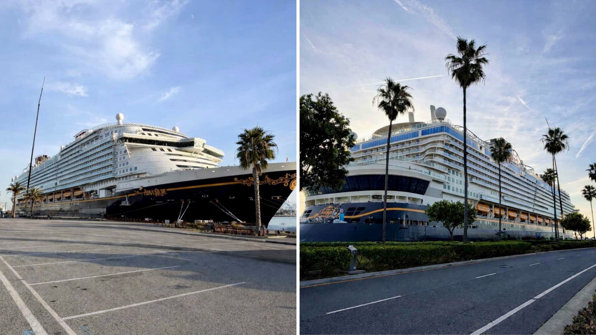 The Disney Adventure cruise ship has arrived at the Port of Los Angeles as she slowly travels to her homeport of Singapore.