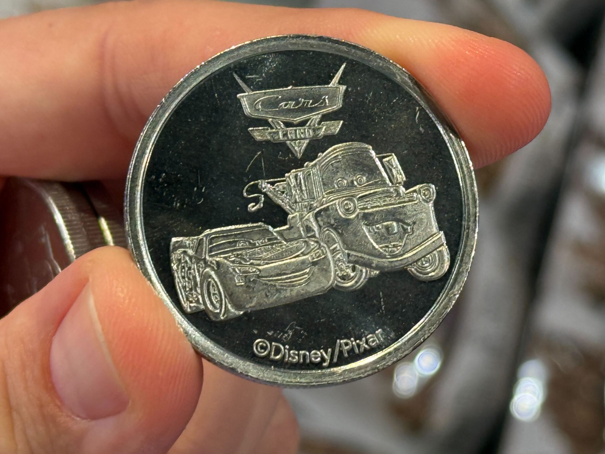 Lightning McQueen and Mater are on a medallion with the Cars Land logo.