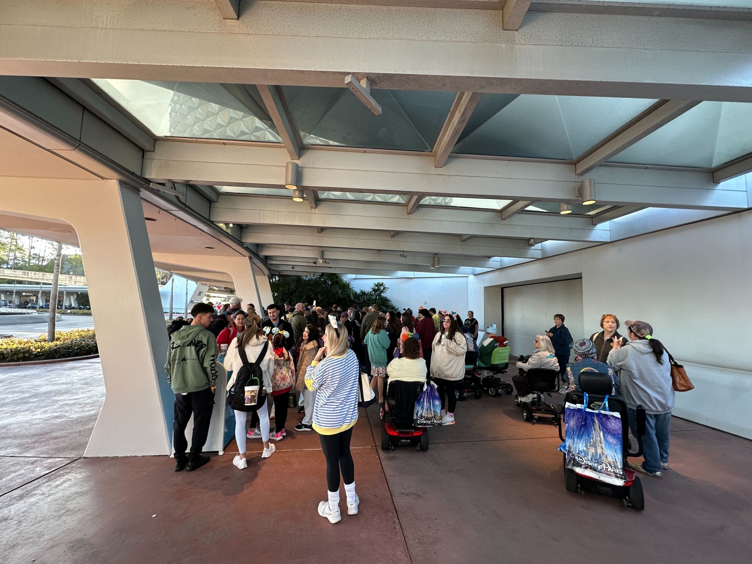 EPCOT tried a different method of pin distribution this Tuesday. Instead of having all guests shopping for pins head straight to Disney Traders, cast members instead held guests at the park entrance and gave out wristbands there. They began utilizing wristbands to control the queue last summer.