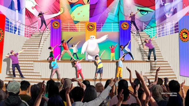 A family gaming lounge, Big Hero Arcade, features video games and immersive, high-tech experiences. While there, be sure to keep an eye out for Baymax.