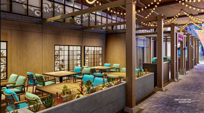 Guests will also be able to meet characters and enjoy Pacific and Indian cuisines at Gramma Tala’s Kitchen and Mowgli’s Eatery, both of which have indoor and outdoor seating.