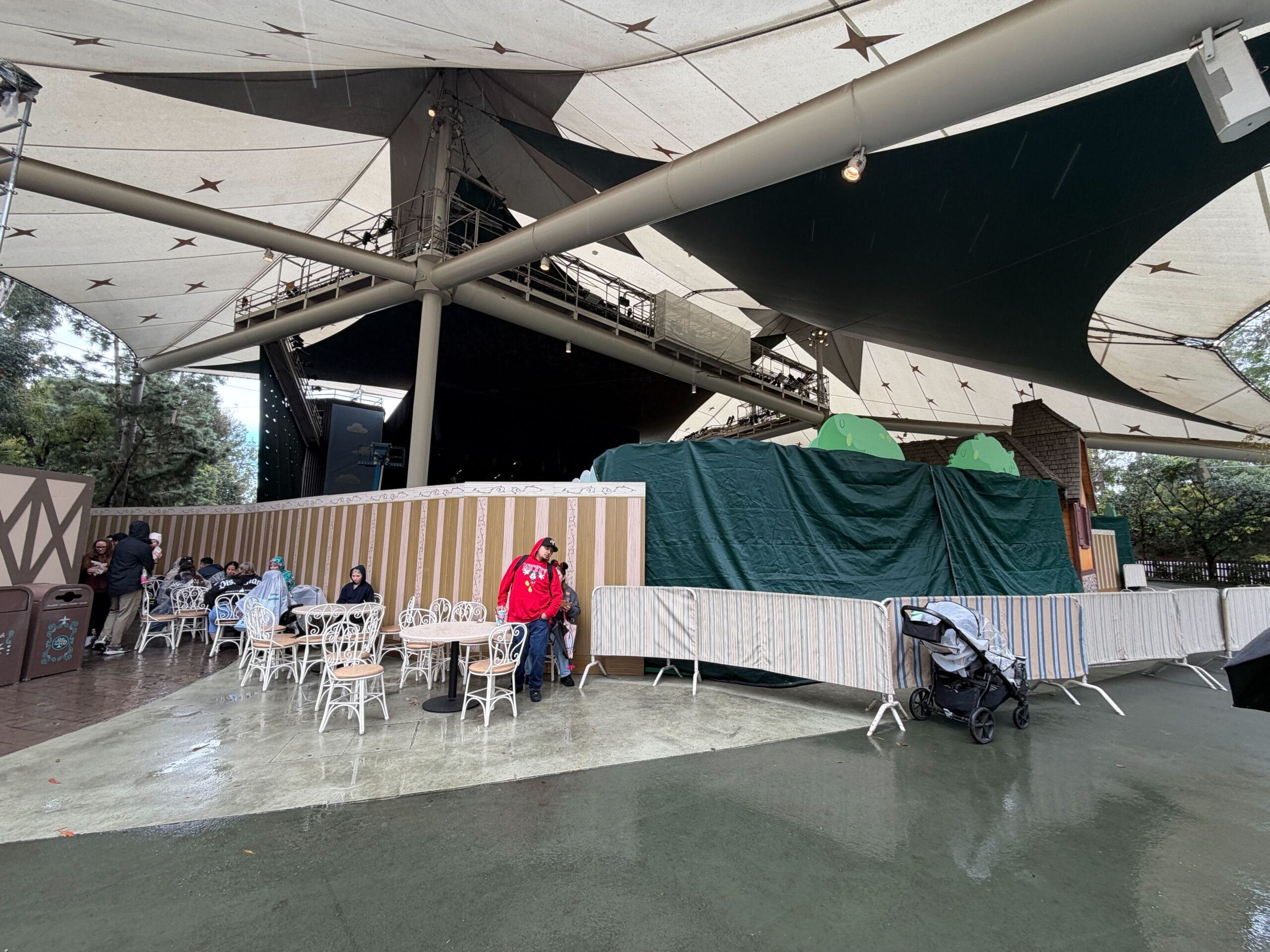 Fantasyland Theatre in Disneyland now has fake trees and a cloudy sky as it prepares for a new Bluey stage show. The theater closed in January and will reopen with the new show in late March.