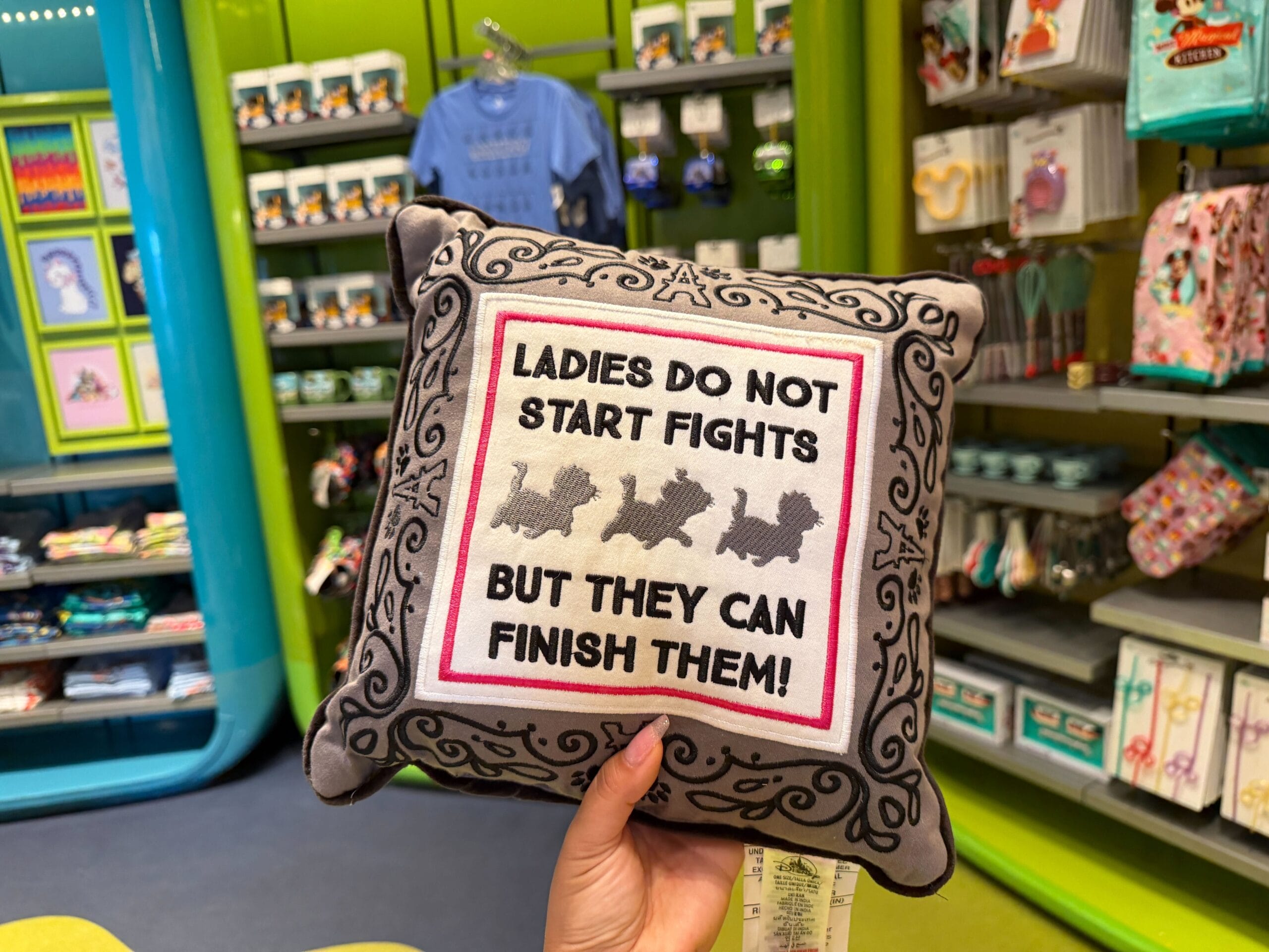 Two new throw pillows available at Walt Disney World are inspired by Fantasyland and Marie from The Aristocats. We found these in Ink & Paint Shop at Disney’s Art of Animation Resort.